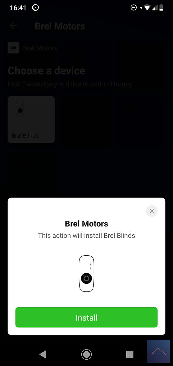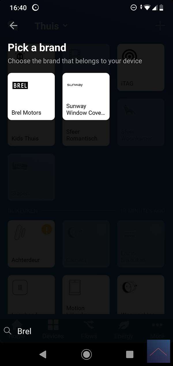 Het installeren start je door in te loggen op de Homey en naar het apparaten gedeelte te gaan. Vervolgens klik je op het plus en installeer je de Brel motors APP. Hierna klik je op Brel Gordijnen en moet je op de afstandsbediening het gordijnen even open en dicht doen. Hij werd netjes gevonden en toegevoegd.