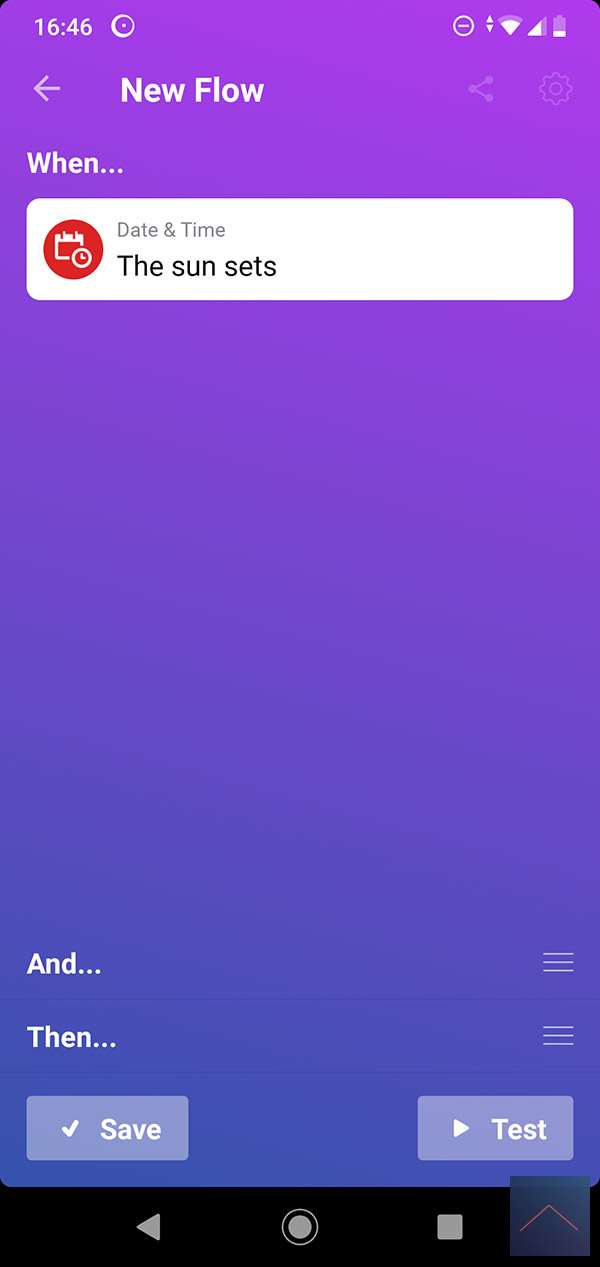 Als voorbeeld wil ik graag dat de gordijnen dichtgaan als de zon onder is.