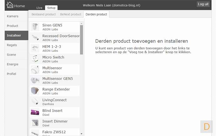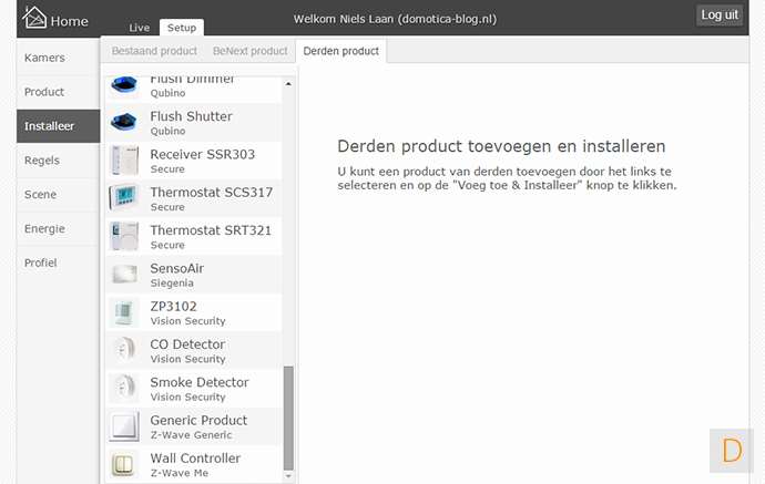 Naast de modules welke BeNext levert is het ook mogelijk om producten van andere leveranciers te installeren. In principe kunnen alle z-wave ondersteunende producten geïnstalleerd.