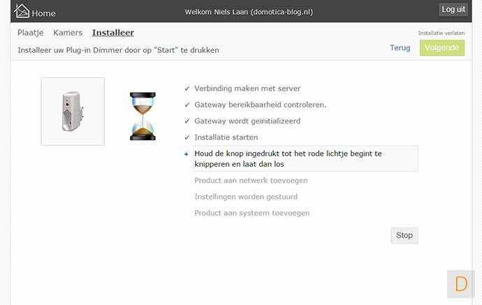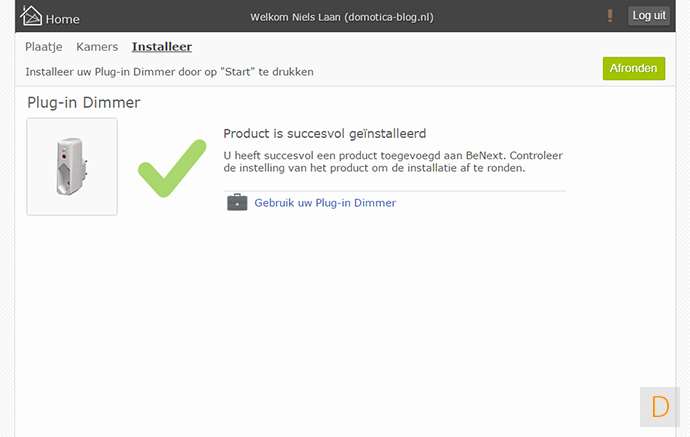 Het installeren gaat door hem in het stopcontact te steken en de installatie procedure op te starten op de controller. Ik zou deze module niet dicht bij je bed installeren omdat hij nogal zoemt. Het dimmen gaat prima.