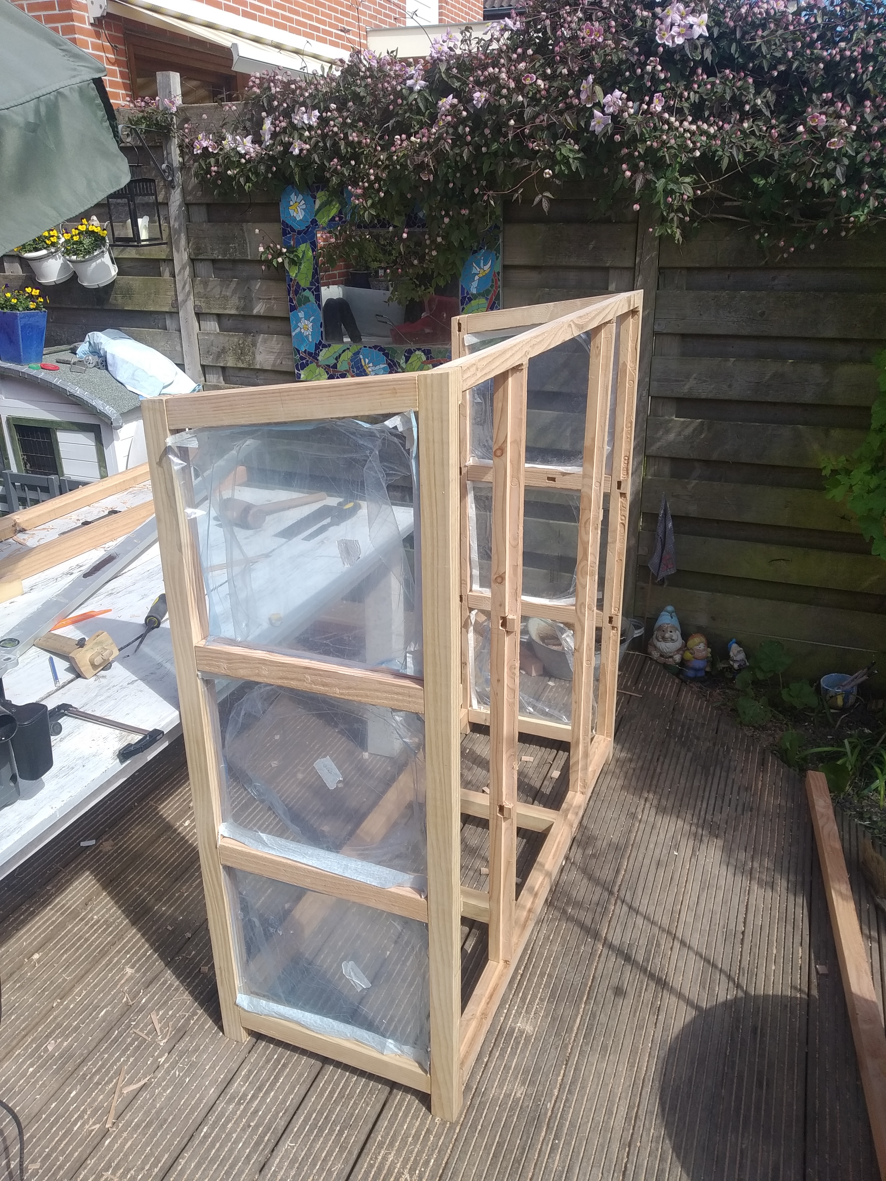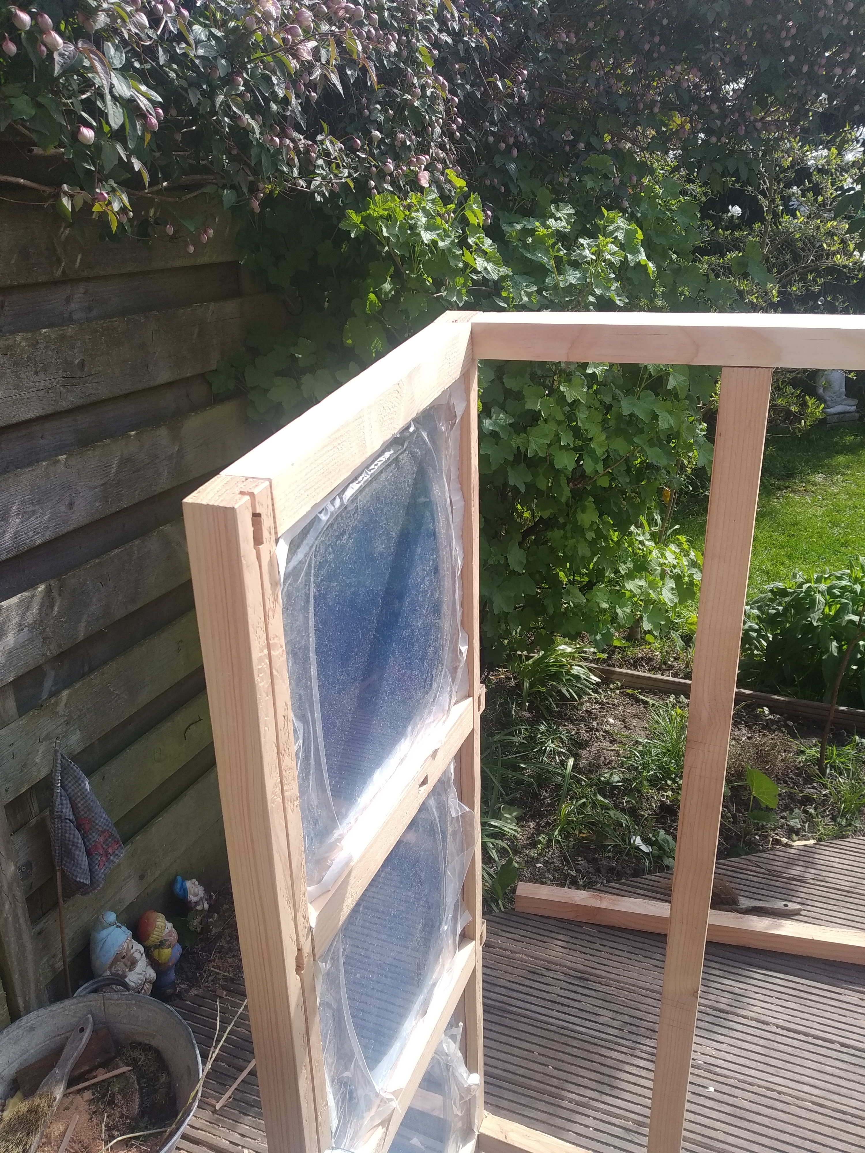 De eerste stap was het bouwen van een kweekkast, zodat de planten beter beschermd zijn tegen de elementen. Je kunt natuurlijk kant-en-klare pakketten kopen, maar zelf bouwen is veel leuker. Onze tuin is niet zo groot, dus een kast op maat is ideaal. Daarnaast is hout tegenwoordig bijna net zo duur als goud, dus als je ergens kunt besparen is dat mooi meegenomen.
