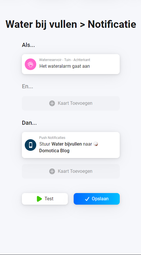De waterpomp is al gekoppeld met de Homey dus deze kan al op afstand aan- of uitgezet worden. Nu dus alleen nog een oplossing voor het waterniveau.