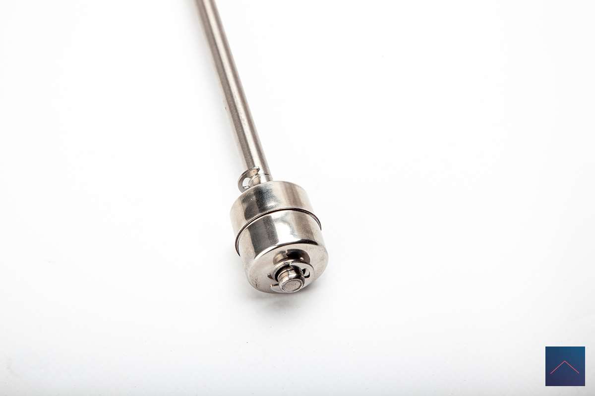 Deze oplossing hebben we al een paar maanden draaien en het werkt perfect. Je kunt hem natuurlijk ook gebruiken om het niveau van je regenton te meten. Deze vlotter kan helemaal onder water dus een versie met een te korte stang is geen probleem mocht jouw waterresevoir hoger zijn. Let dan wel op dat de draden niet superlang zijn.