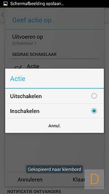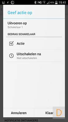 Ik heb een actie gemaakt om een lamp aan de zetten en weer uit na 1 min. Daarnaast wil ik graag een notificatie ontvangen op mijn telefoon.