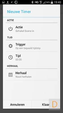 Naast bovenstaande acties is het mogelijk om, met bv een schakelaar, verschillende timers aan te maken. Je kunt dan bv een lamp op tijdstip x aan laten schakelen.