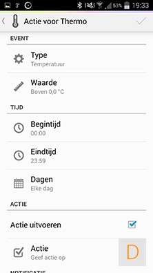 Het is ook niet mogelijk om bv een regel te maken als de temperatuur tussen de 20 en 22 graden is dan voor actie x uit. Het geheel is dus wat beperkt maar zal voor de meeste mensen voldoende zijn.
