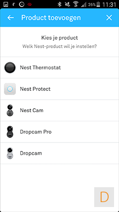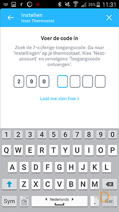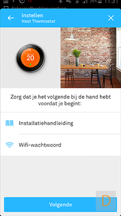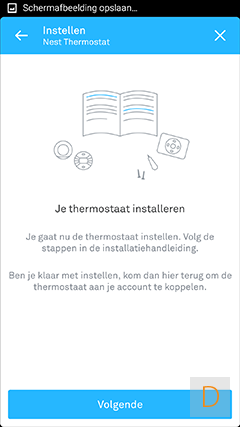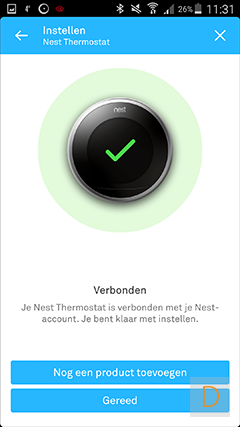Nadat je bovenstaande schermen doorlopen hebt, is het zaak dat je de thermostaat toevoegt aan de app: