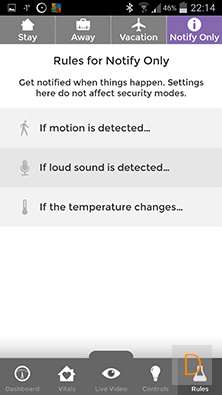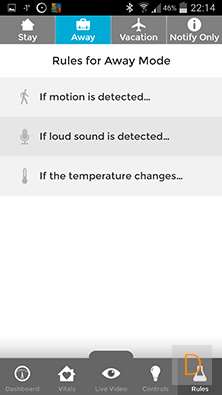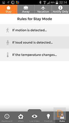 In het rules gedeelte kun je verschillende "regels" aanmaken. De regels zijn onderverdeelt in verschillende statussen. Je kunt laten reageren op: beweging, geluid en temperatuur.