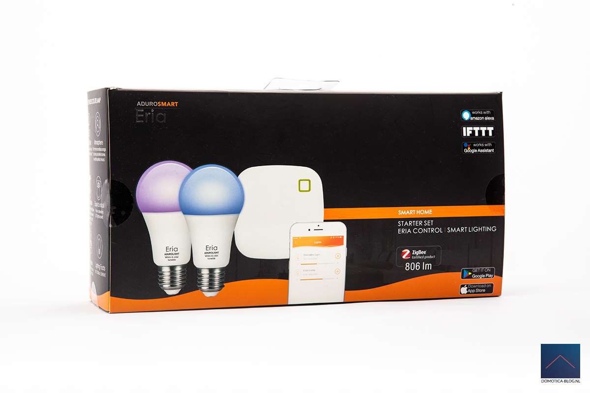 De controller is los te koop en ze hebben twee starter pakketten licht en beveiliging, wij hebben de starters pakket licht “ERIA Colors and White Start Kit A19 60W A19” en een bewegingssensor “ERIA Smart Motion Sensor”. ERIA heeft een reeks aan verschillende lampen, een beveiliging en beweging sensor en een dimmer.