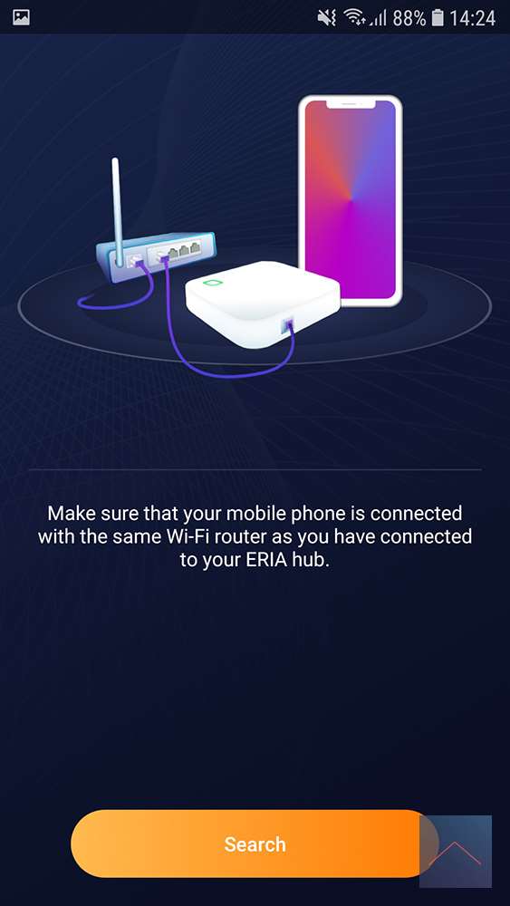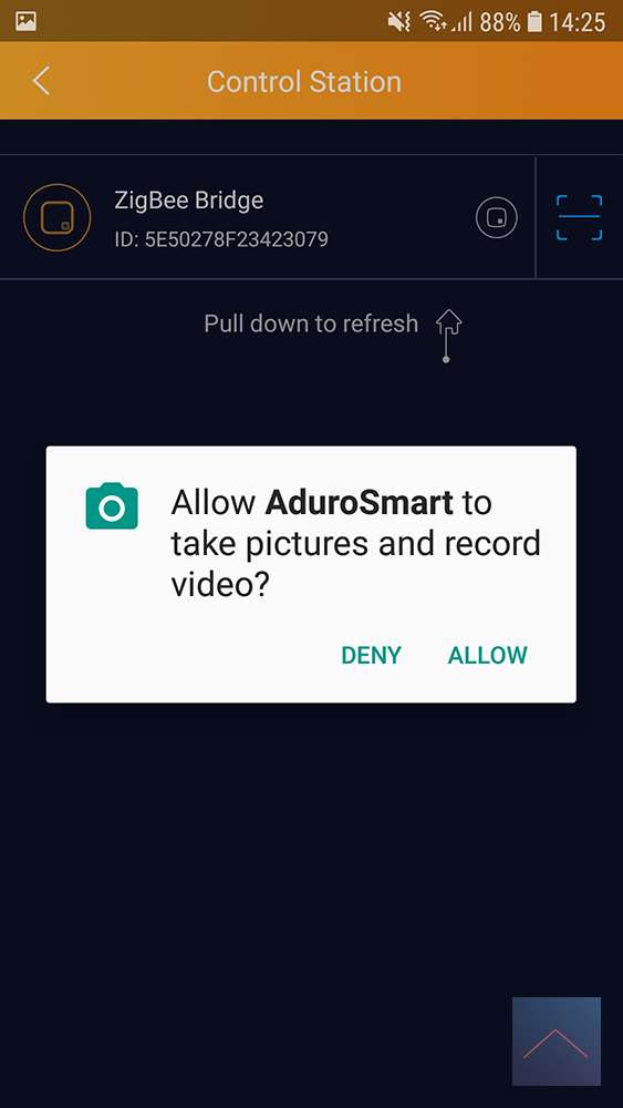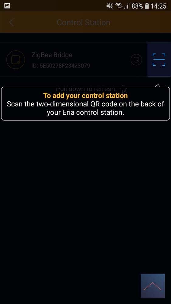 Goed we hebben nog geen account en zullen we ook moeten aanmaken, je krijg meteen een verificatie code terug en je kan inloggen. Je komt dan meteen in het setup scherm van je Eria en met uitleg staat er hoe je de connectie met je Eria kan maken. Als de app je controller heeft gevonden zal je een foto moeten maken van de QR code op de achterkant van de controller. Na het scanner is die gelinkt en gaat die meteen kijken of je de laatste update hebt, heb je die niet zal de app deze downloaden en erop zetten. De update duurt even, maar daarna zal die opnieuw opstarten en krijg je het bericht dat je ZigBee Bridge succesvol een connectie heeft. Hierna wil de app graag weten wat je locatie is en gaat meteen naar de instelling van je telefoon om dit aan te zetten.