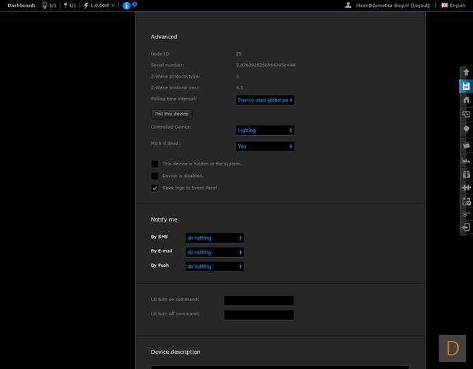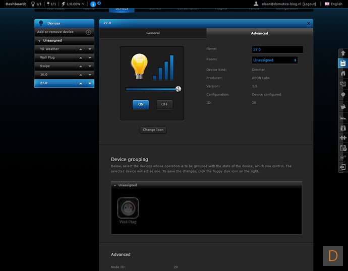 In de Fibaro HC2 is dus alleen de dim en aan/uit optie beschikbaar. Helaas zijn dus niet alle opties beschikbaar en is dus deze lamp een dure oplossing.