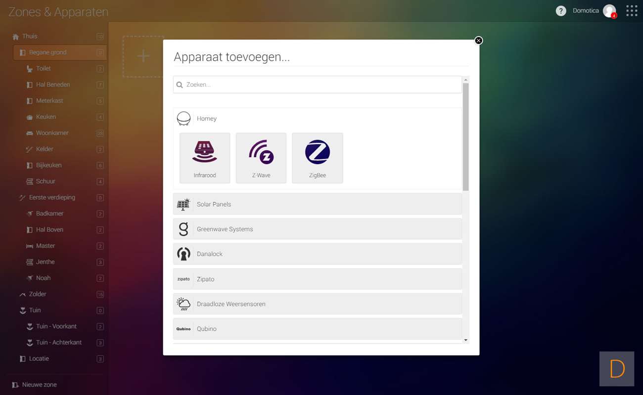 Als eerste controller beginnen we met de Homey. Deze sensor voldoet aan de standaard Z-Wave specificaties dus toevoegen zou geen problemen moet geven.