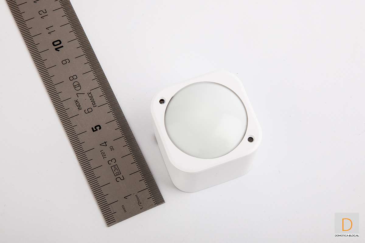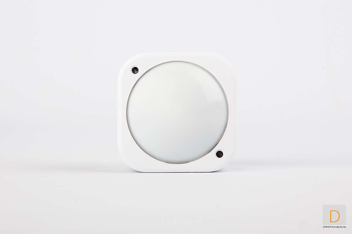 Deze mulitsensor is echt super klein, hij is maar 42mm groot. Dat hebben ze erg goed gedaan. De kleur is mat wit en hij weegt maar 76 gram. Aan de voorkant zit er een ledje welke de status aangeeft en welke gebruikt wordt voor het toevoegen. Later meer hier over.