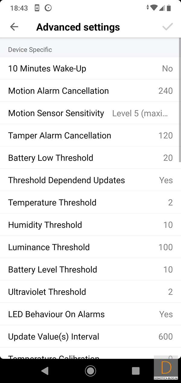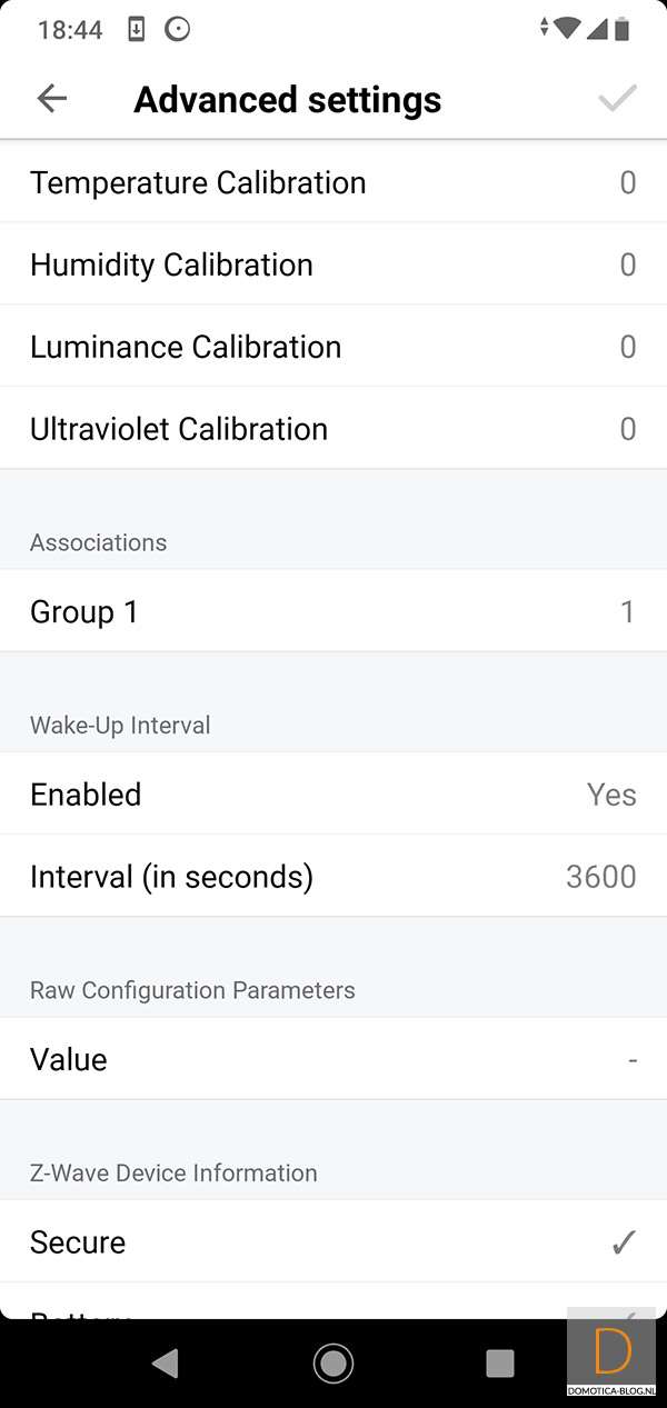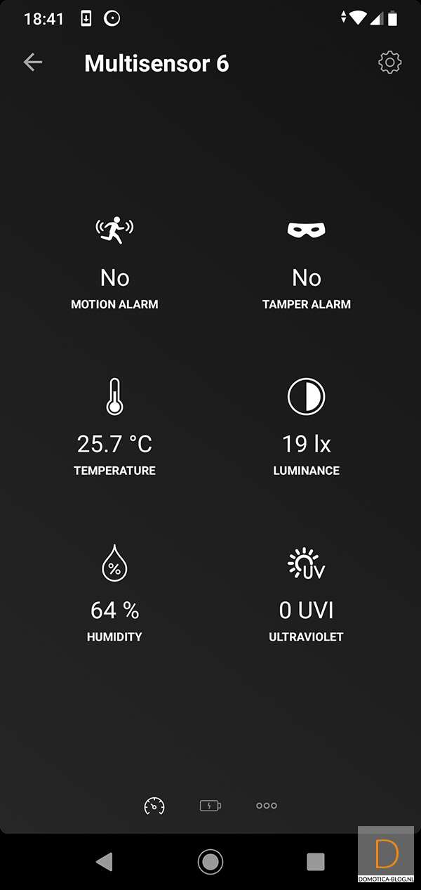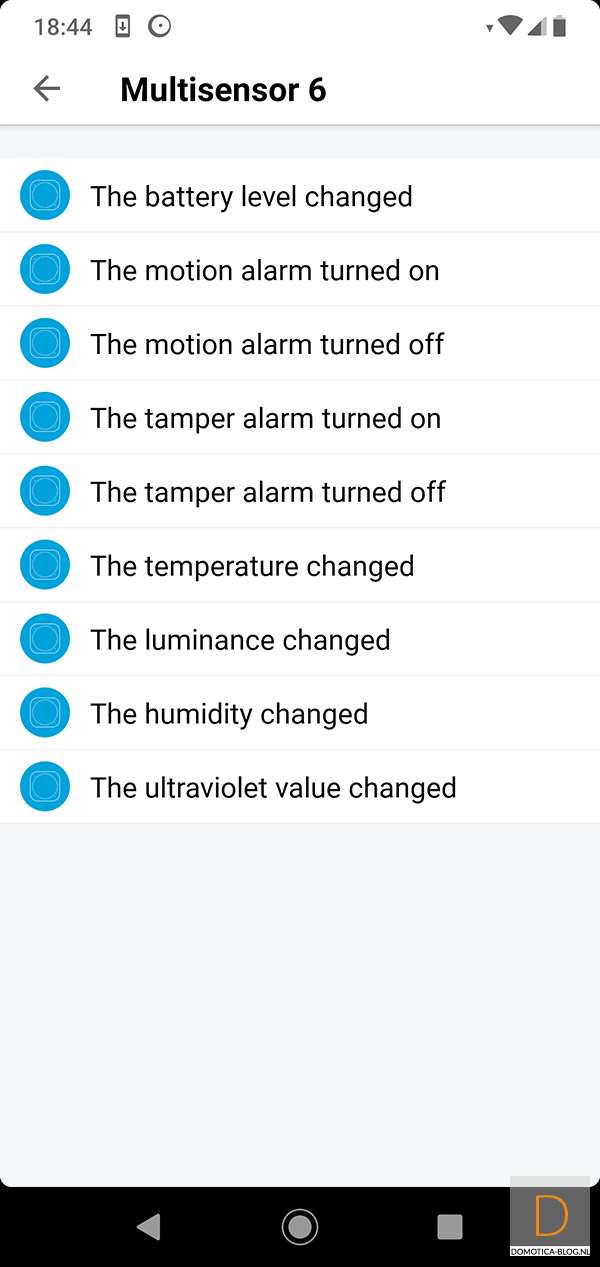 Bij mijn apparaten zie ik een bewegingssensor, lux meter, temperatuurmeter en UV meter.