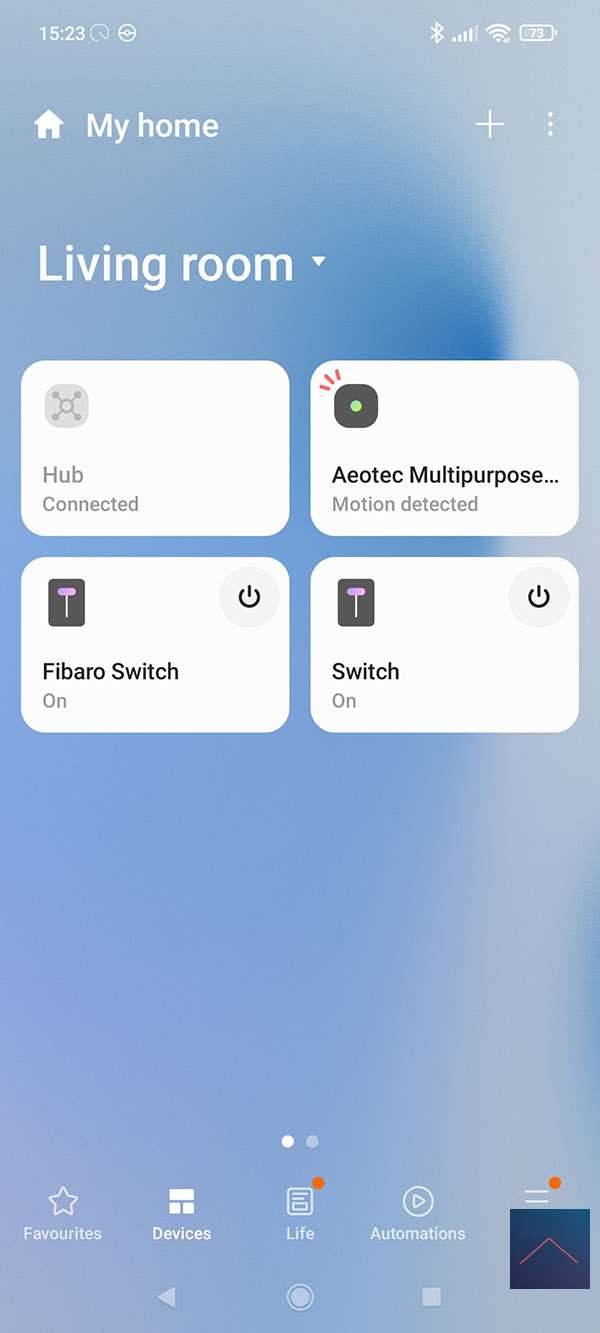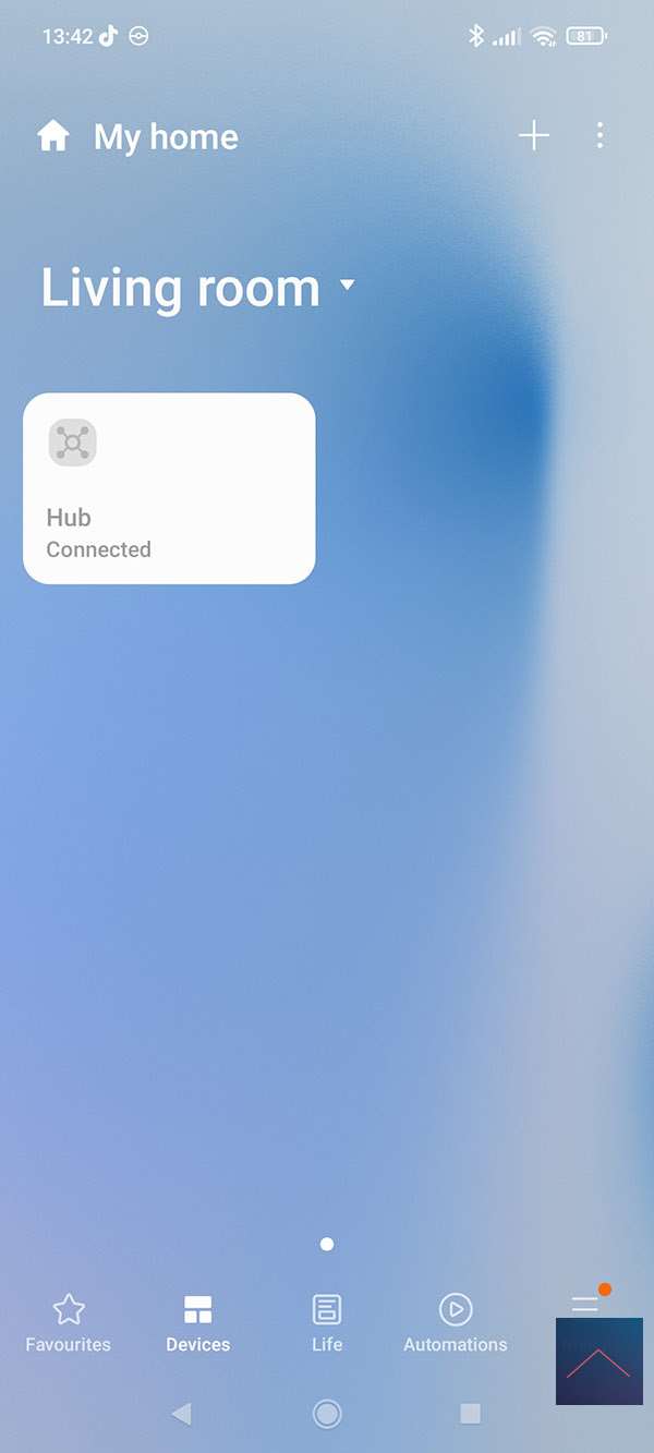 Als er iemand langs de sensor loopt dan stuurt hij een signaal naar de hub. Deze registreert dan dat er beweging is en daarvan uit kun je bv een lamp laten aanzetten. Hoe dit precies werkt? Dat behandelen we in een volgend hoofdstuk.