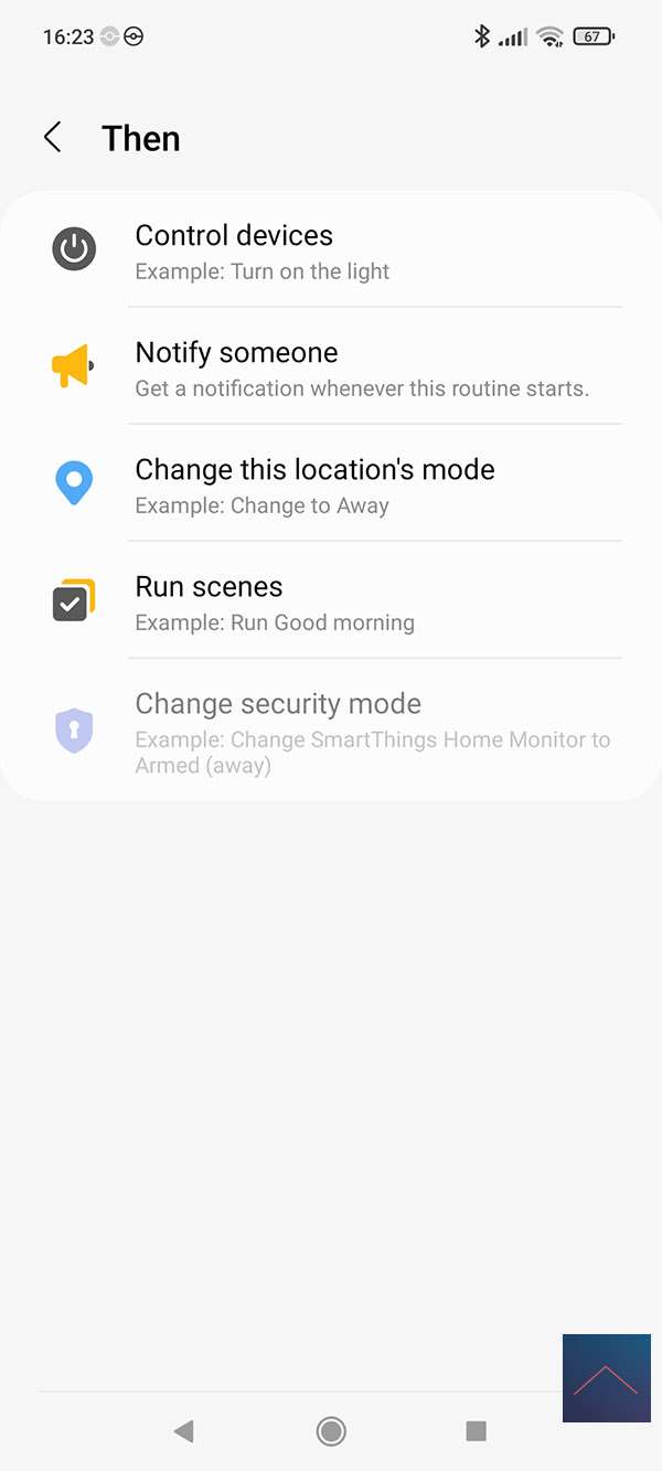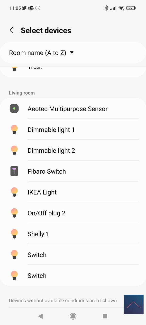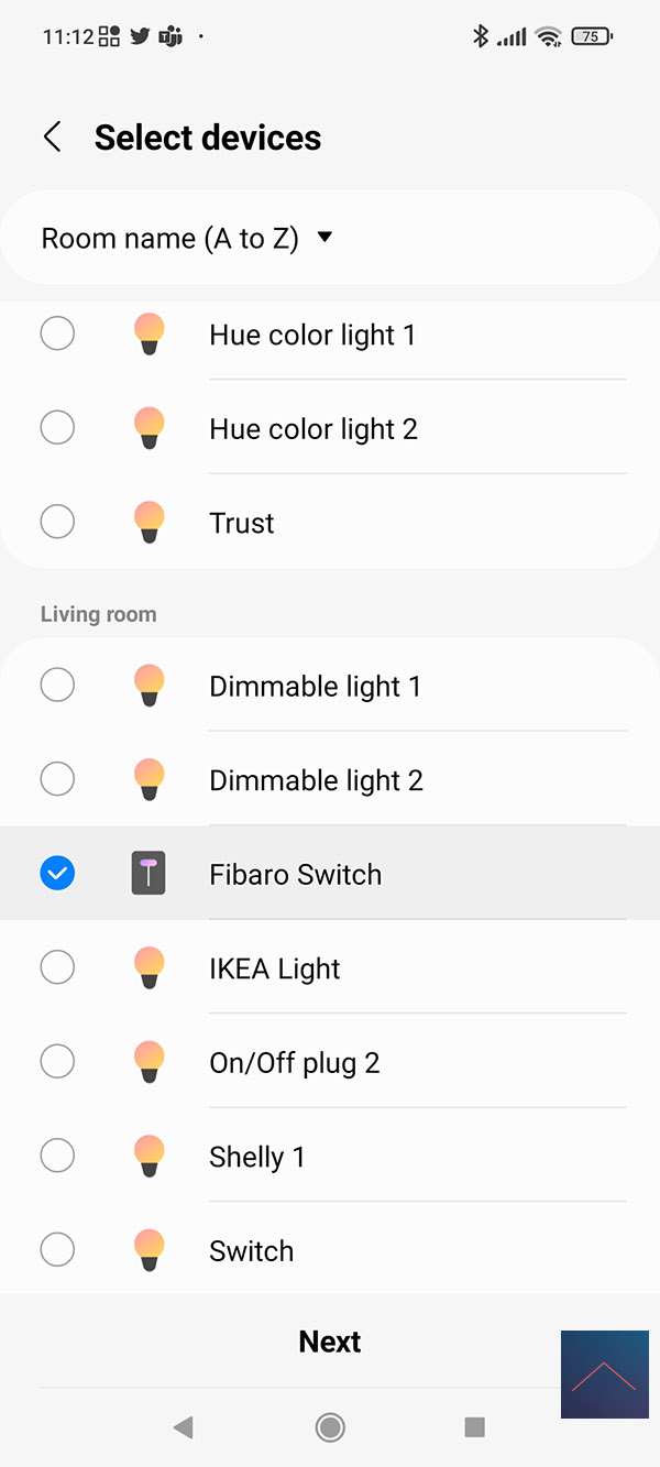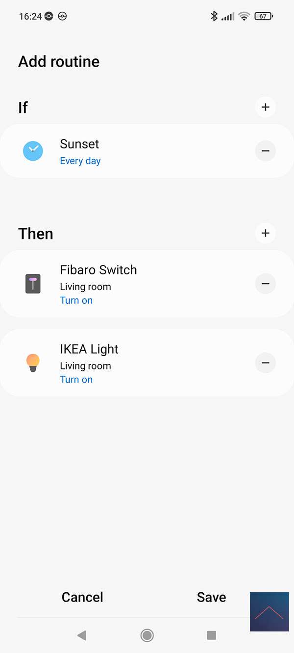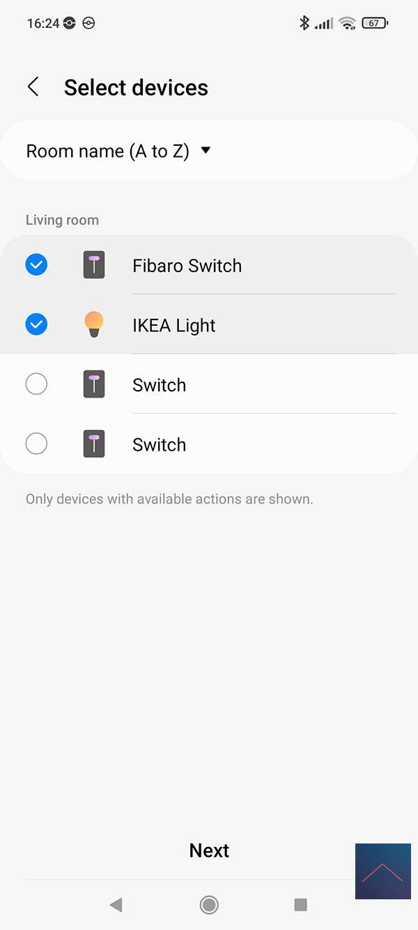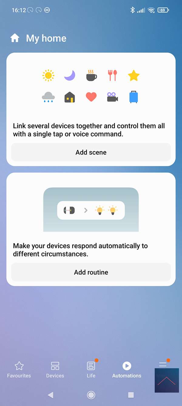 Er zijn 2 mogelijkheden om te automatiseren en dat zijn scenes en routines. Met een scene kun je verschillende apparaten aan elkaar koppelen. Denk hierbij bv aan dat je alle lampen in je woonkamer aan een scene koppelt.