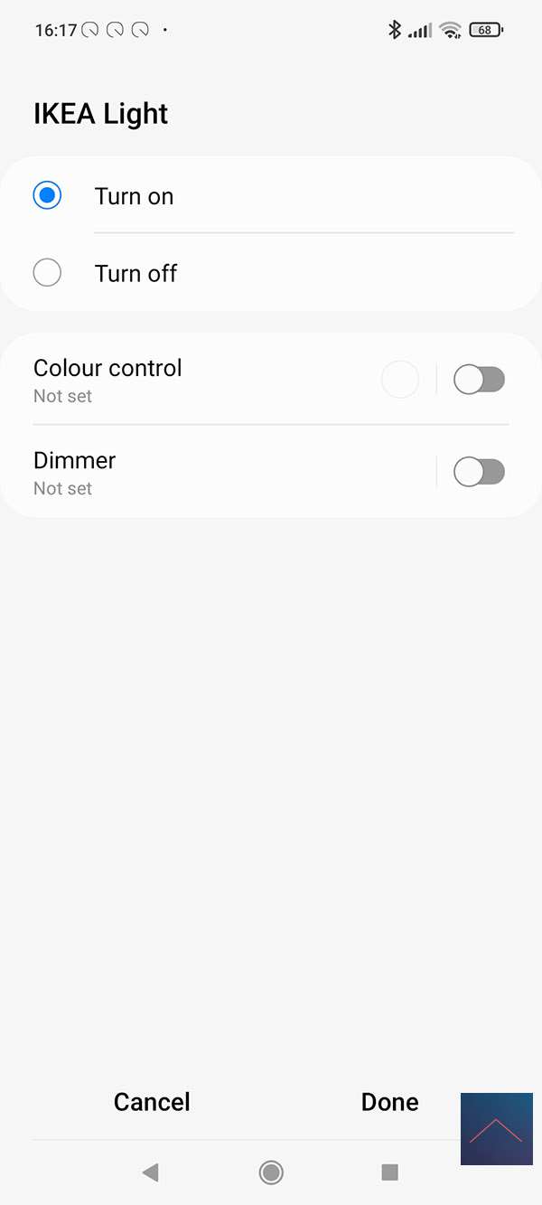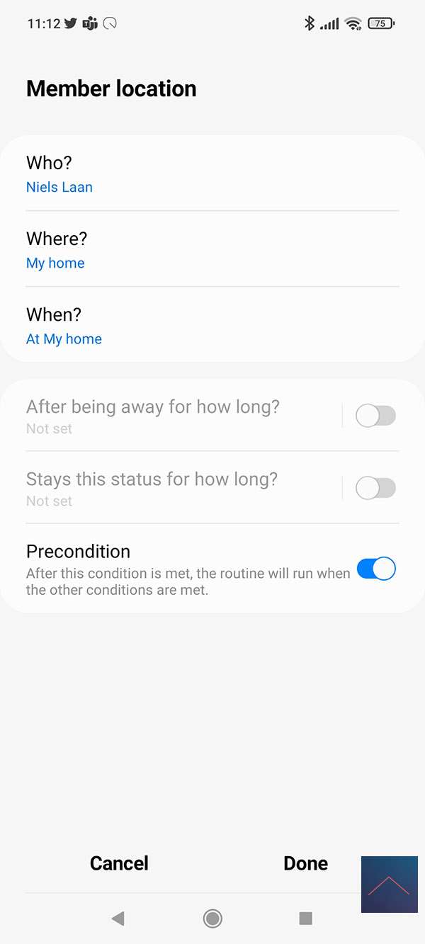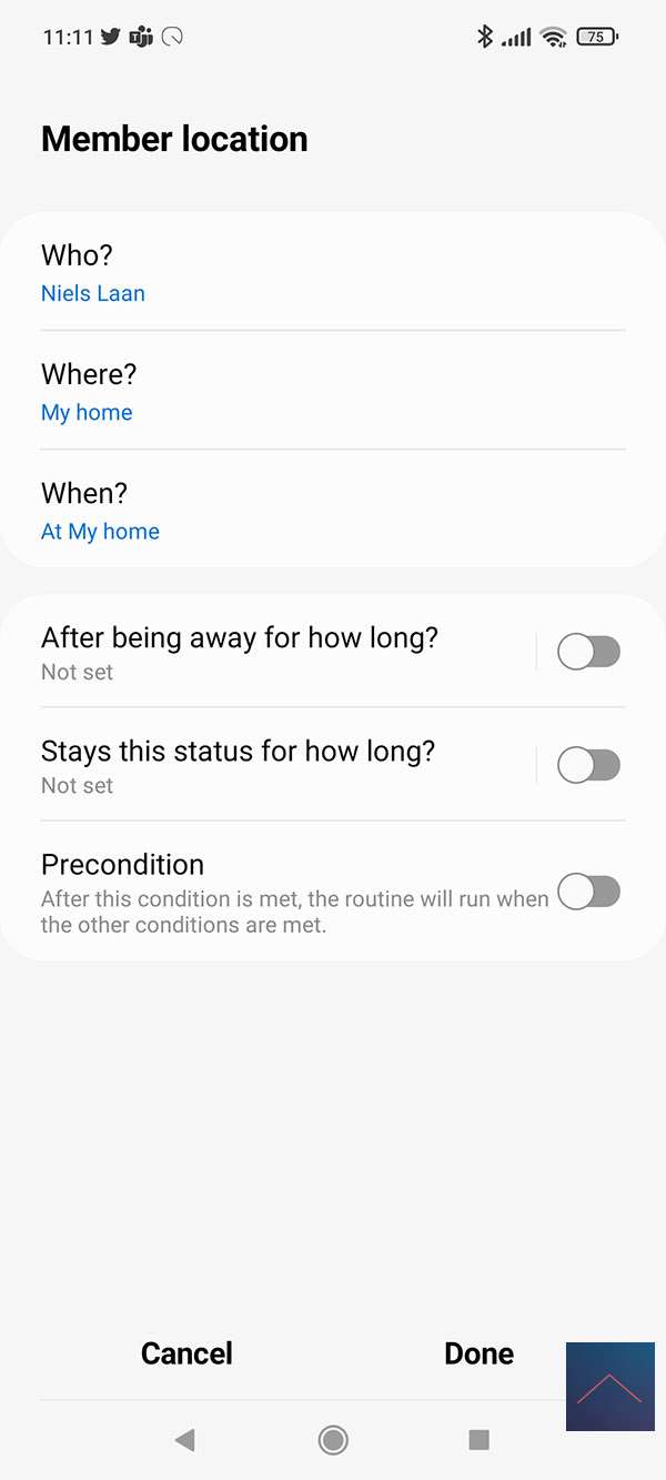 Bovenstaand voorbeeld is natuurlijk een eenvoudig voorbeeld waarbij we uitgaan van 1 trigger. Misschien is het leuk om bij de volgende regel uit te gaan van meerdere triggers. We nemen als voorbeeld: als er beweging is, en ik thuis ben, dat dan de lamp in de hal aangezet mag worden.