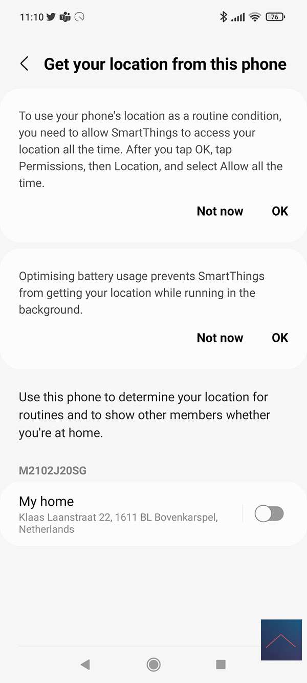 Nu moeten we nog de aanwezigheid toevoegen aan het geheel. Hiervoor gebruiken we de ingebouwde locatie detectie. Om dit werkend te krijgen moeten we de APP wat toestemmingen geven op je telefoon.