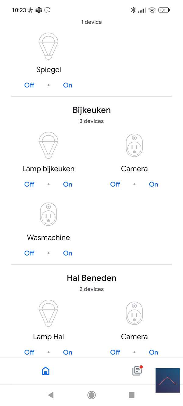 Nu de de GH gekoppeld aan de Smartthing hub, zie ook mijn apparaten staan op het begin scherm.