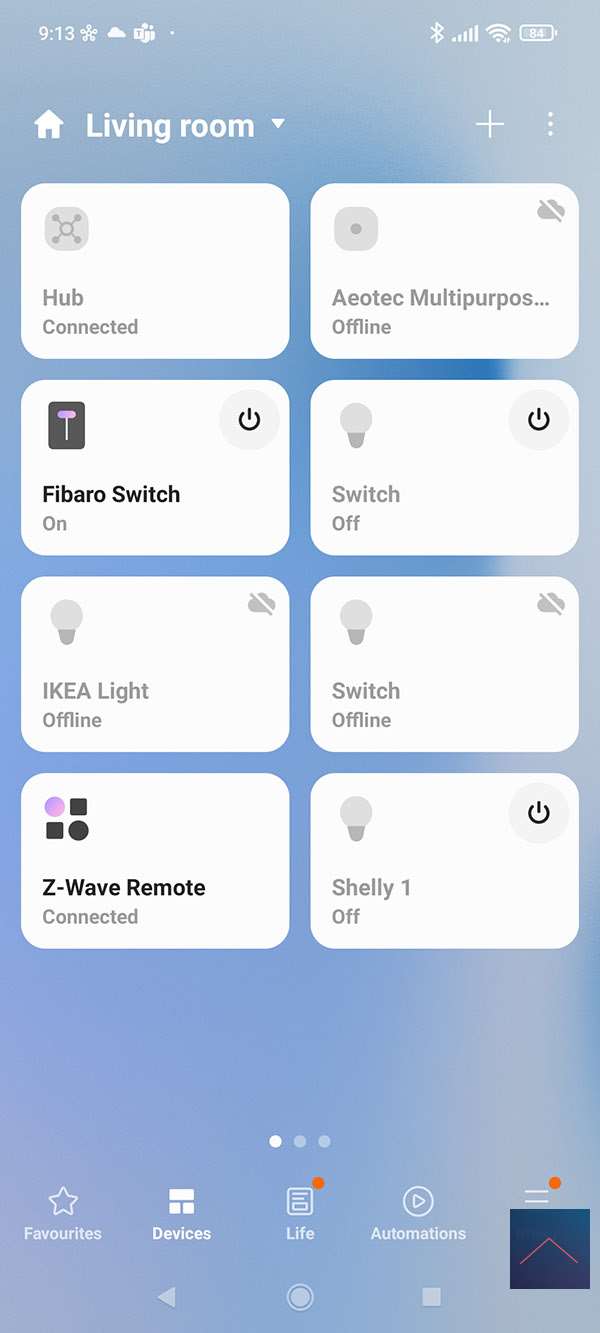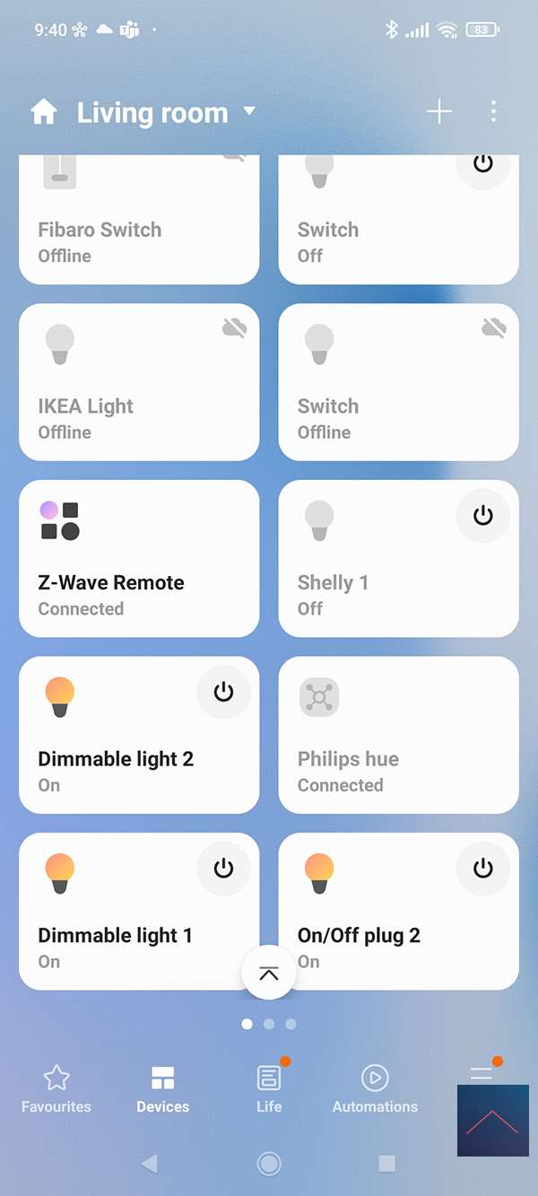 Na enkele seconden zien we alle apparaten en kunnen we ze bedienen.