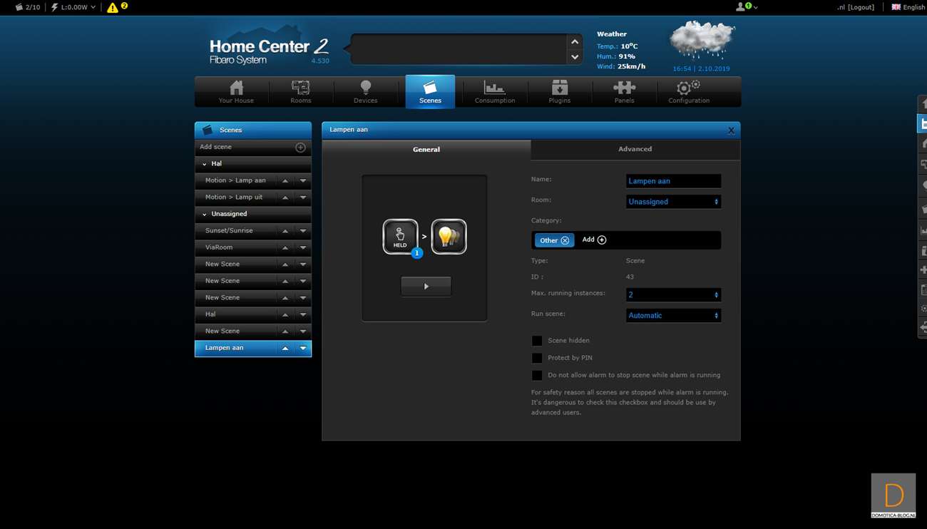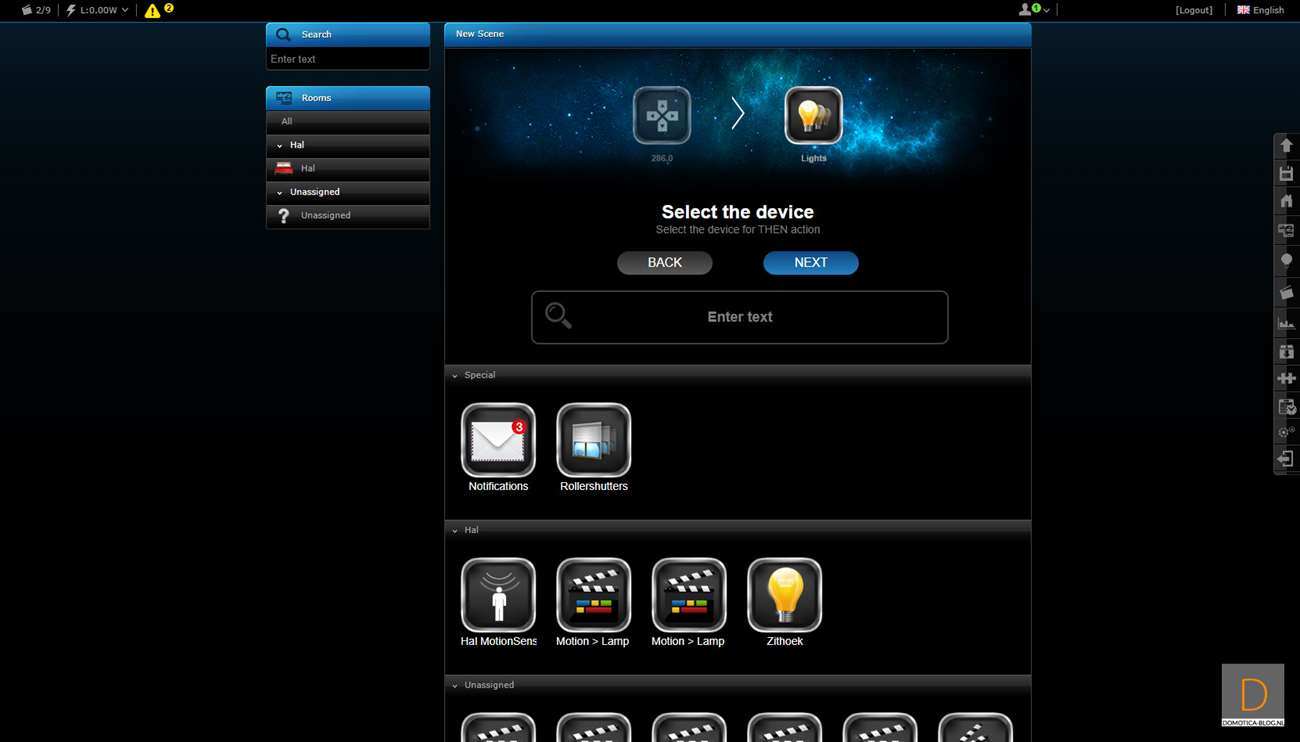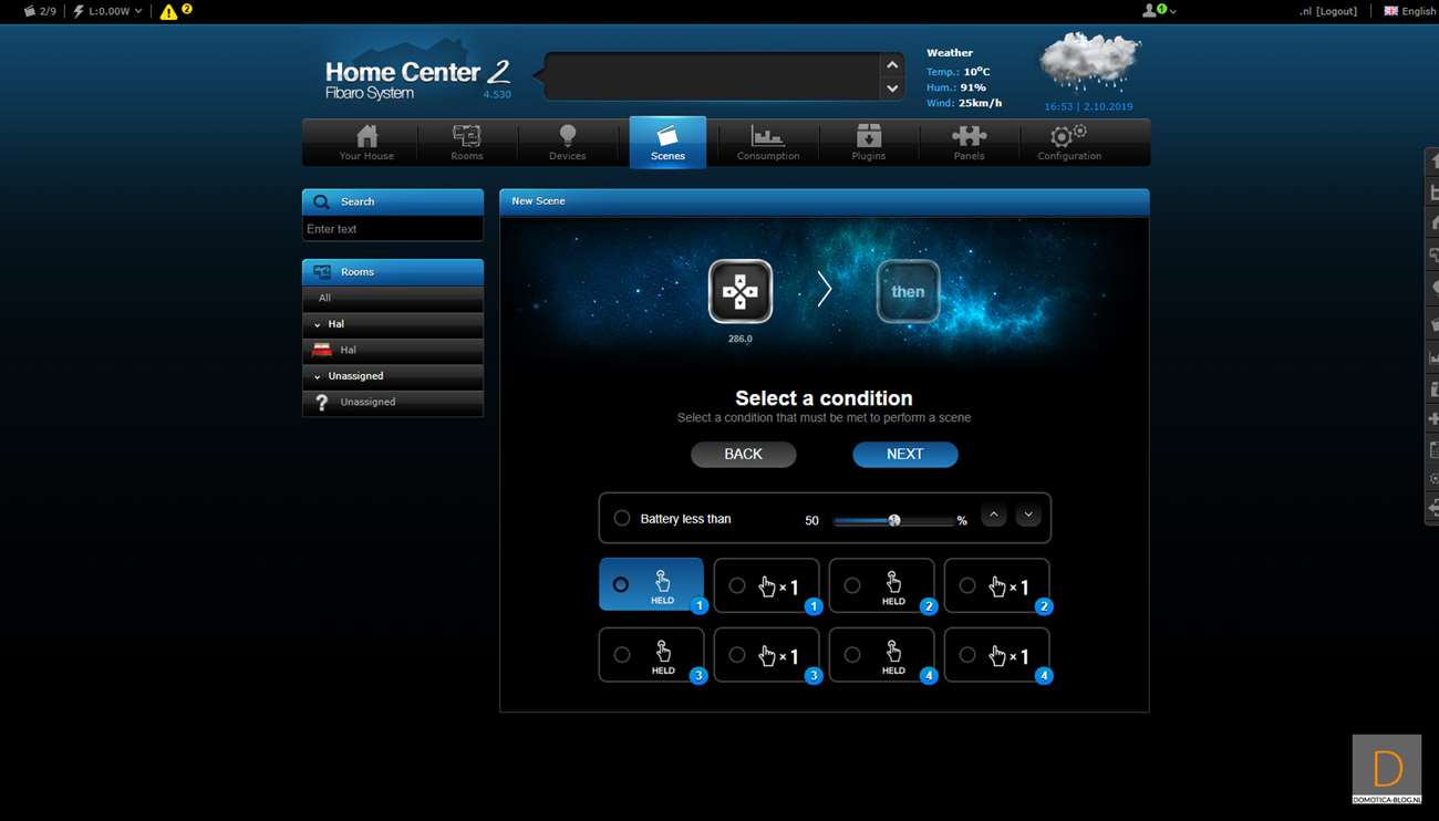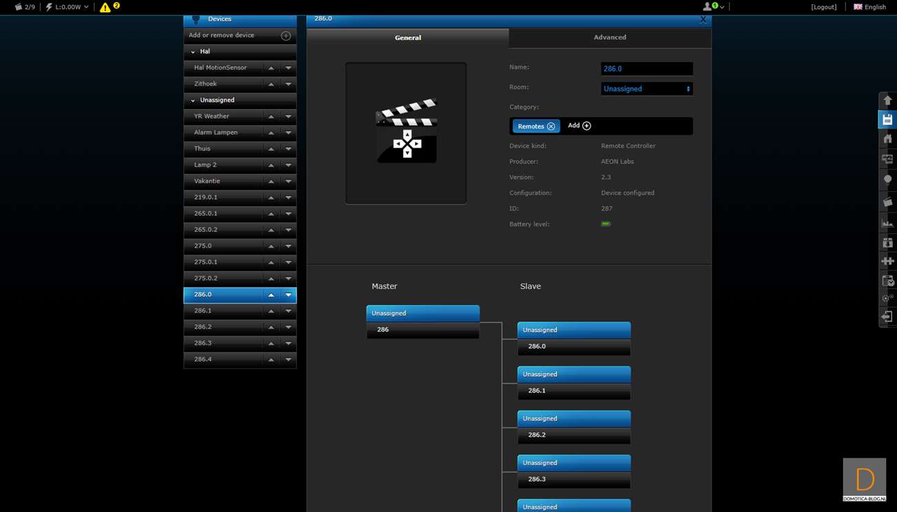 Meestal zijn de HC2 en Aeotec wel goede vriendjes, dus het toevoegen van deze remote moet wel lukken. Je haalt eerst de cover van de achterkant af. Hierdoor zal hij van stroom voorzien worden en zal hij in het toevoegen modus gezet worden. Hierna log in je op de HC2 en ga je naar je apparaten en druk je op "add". De remote werd toegevoegd en ik zie een bevestiging doordat de LED van de Wallmote oplicht. Mocht dit trouwens niet lukken, dan kun je 1 keer op het knopje aan de achterkant drukken om het toevoegen te starten.