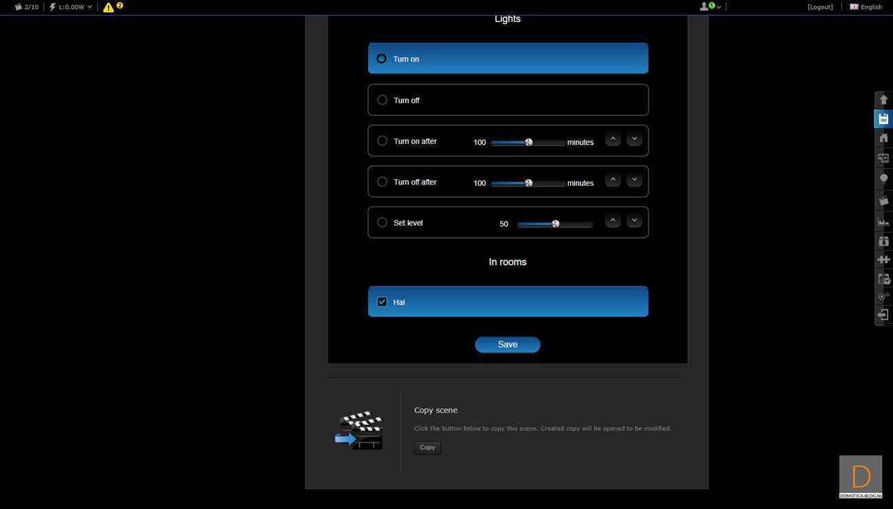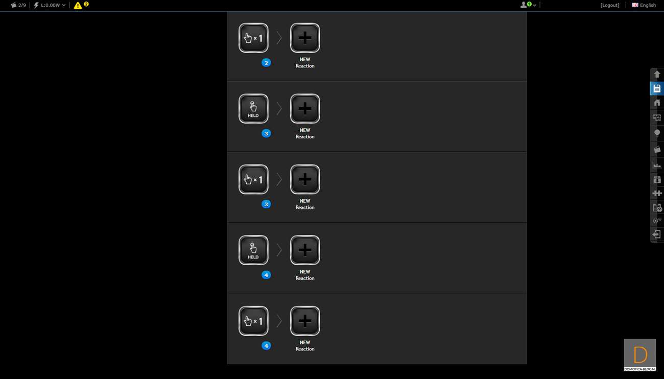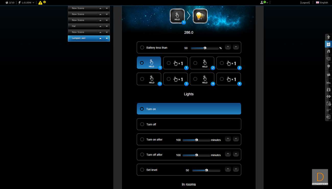 Bij mijn dashboard zie ik 5 apparaten verschijnen en nog belangrijker: ik kan een scene maken met de knoppen. Helaas worden alleen maar 1x drukken en vasthouden ondersteund. Ik zie ook geen configuratie mogelijkheden. Deze moet ik dus zelf invoeren via de parameters (zie verder op in de artikel).