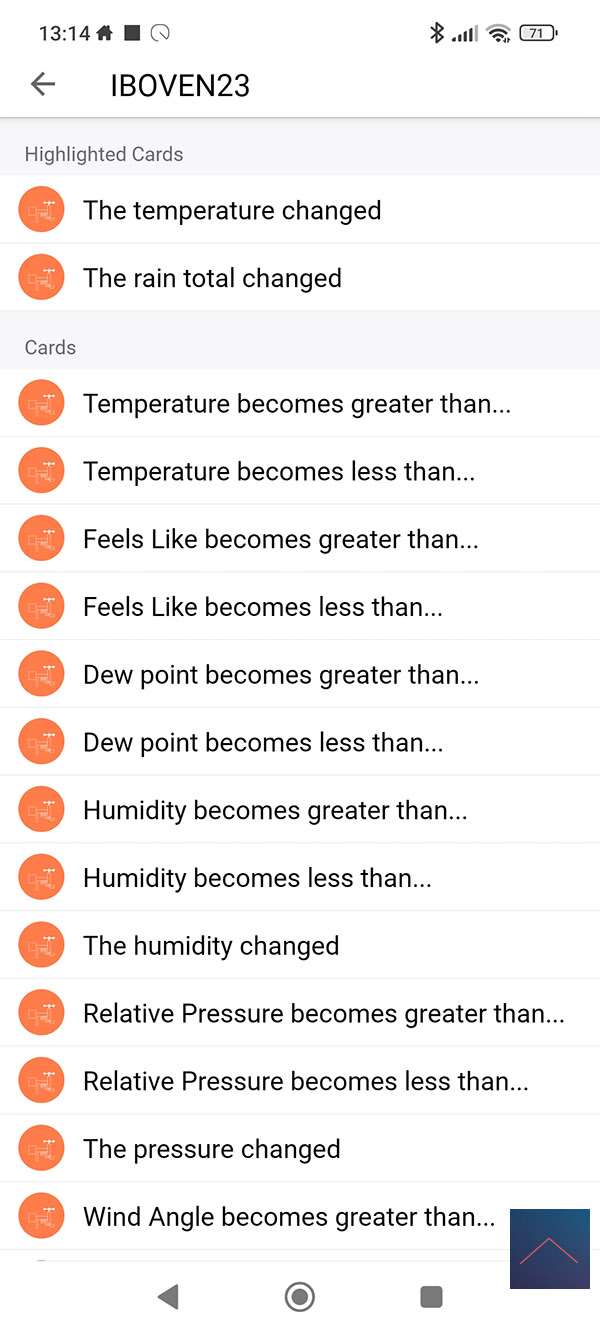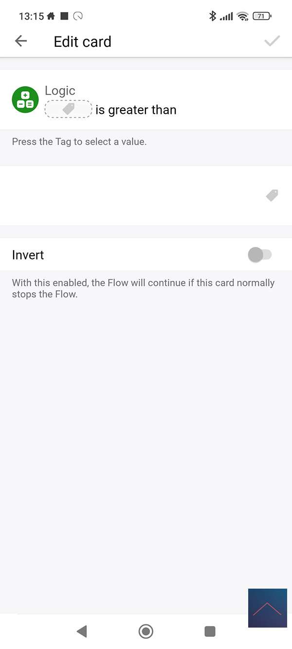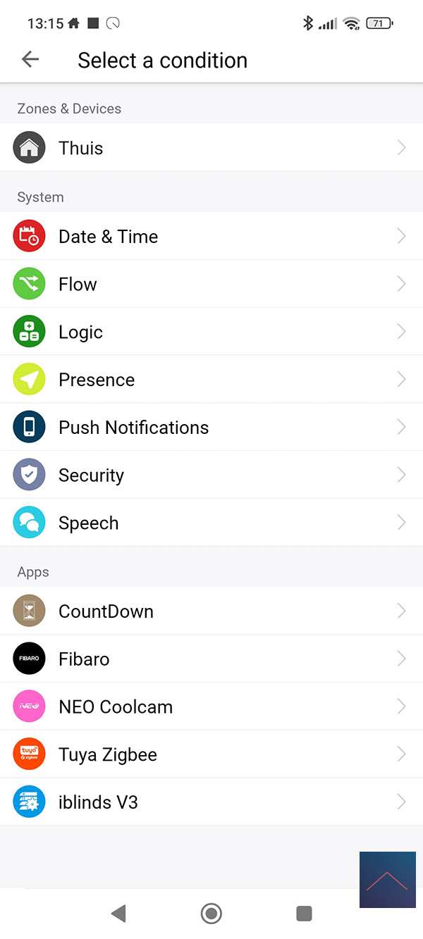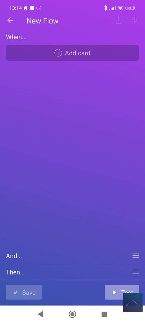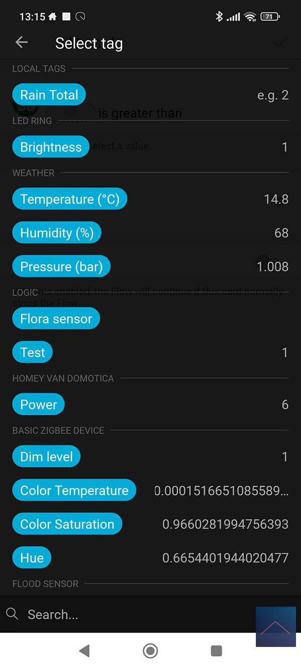 We maken een flow waarbij, als het regent, we een notificatie ontvangen. Hiervoor gebruiken we het kaartje "regen totaal" en bepalen de hoeveelheid regen en sturen we een notificatie.