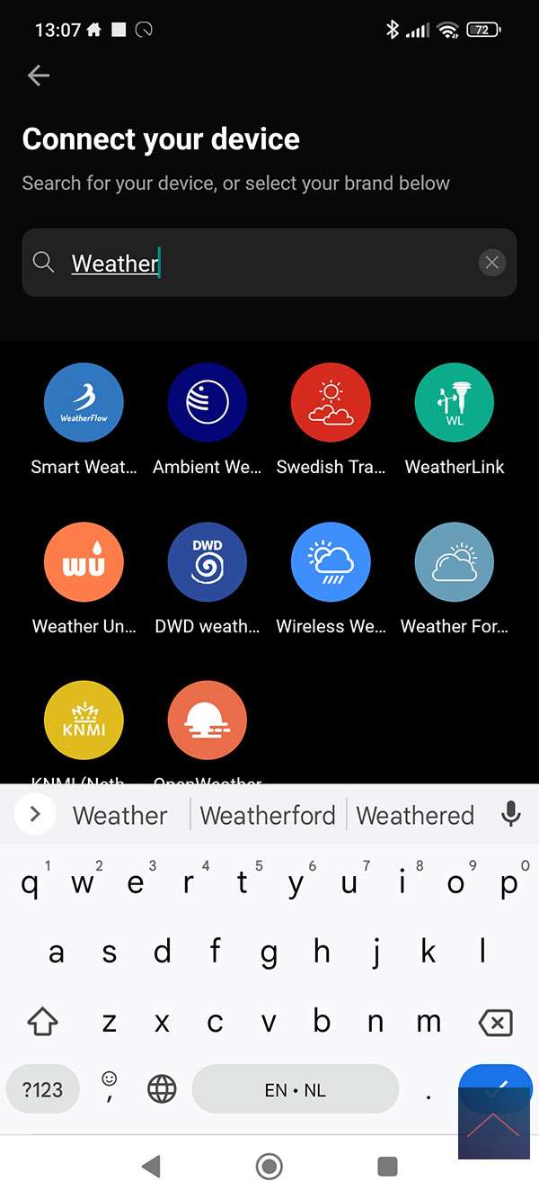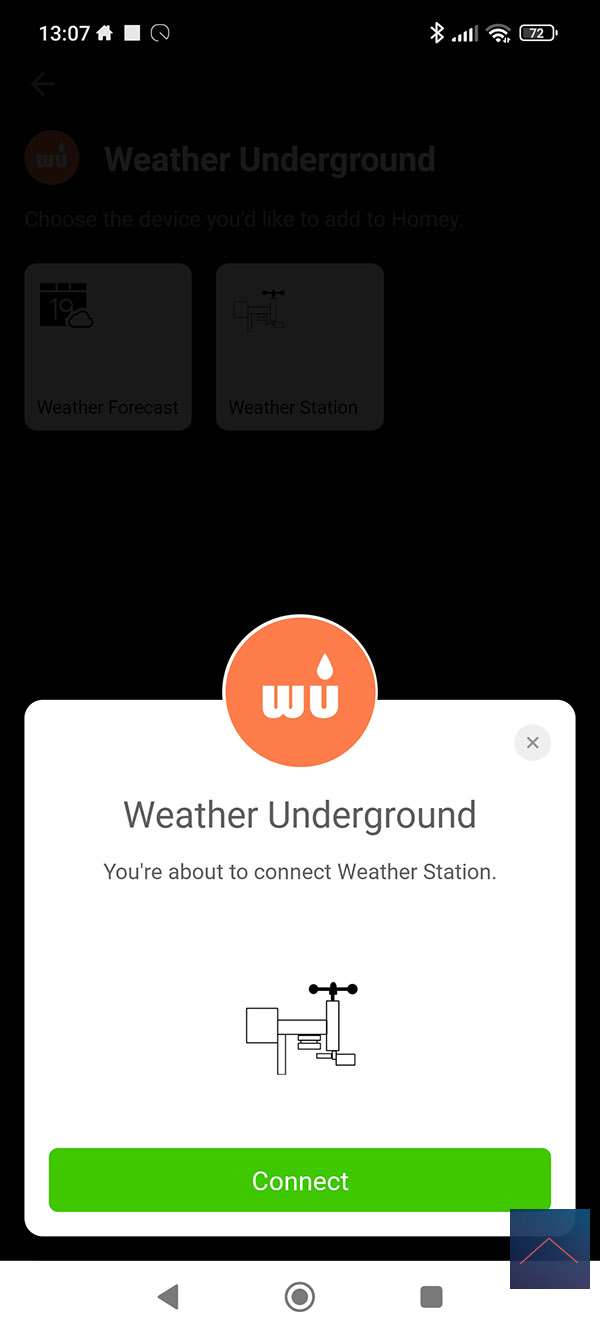 Nu we het station gekoppeld hebben aan Weather Underground kunnen we hem gebruiken in de Homey. Om dit voor elkaar te krijgen openen we de APP en gaan we naar onze apparaten. Drukken op het plusje en zoeken op "weather underground". We willen vervolgens een weerstation toevoegen. Na een paar seconden wordt er gevraagd om mijn station ID en API key. Deze API key moet je op de website van Weather Underground genereren.