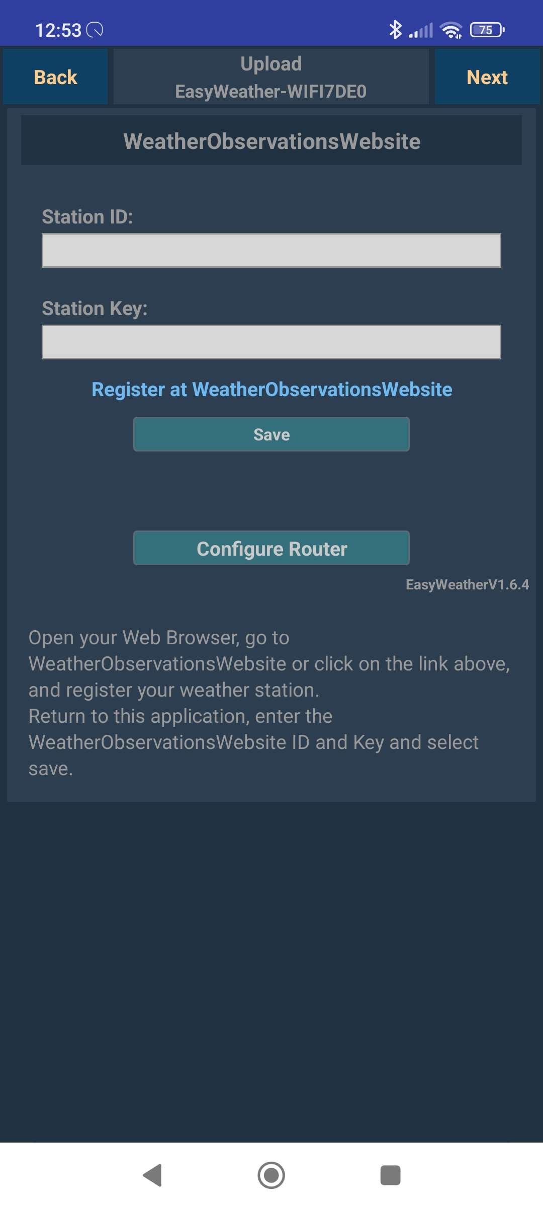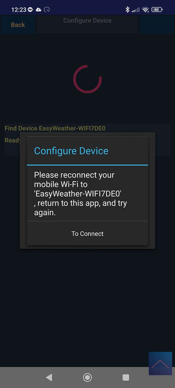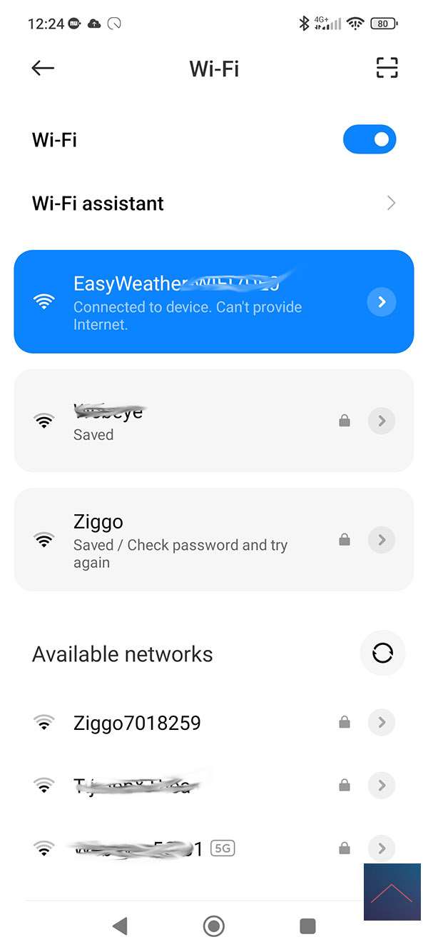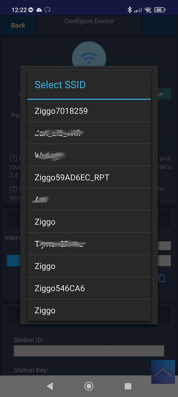 Sla dit geheel vervolgens op en verbind in het volgende scherm. Nu moeten we de WiFi van het weerstation selecteren en enkele keren op next klikken.