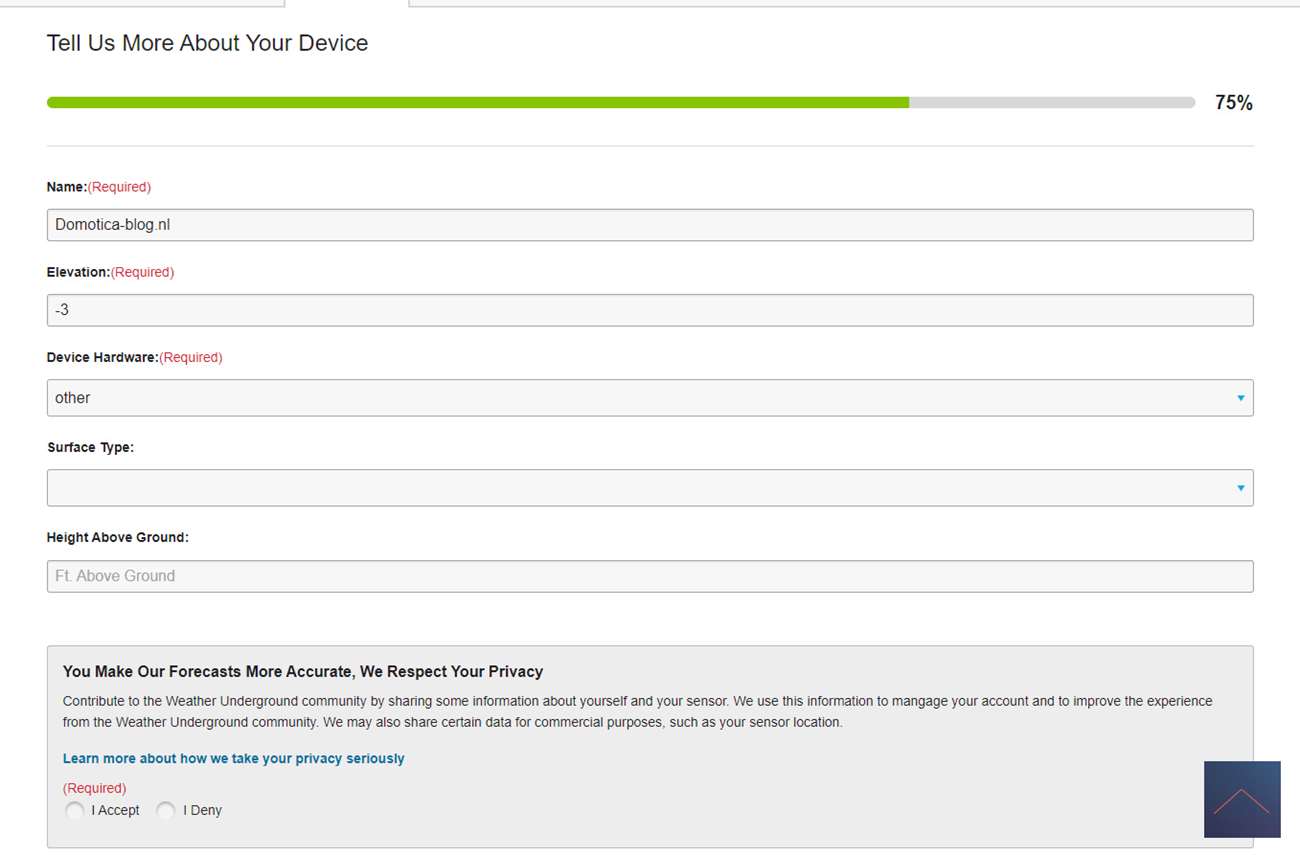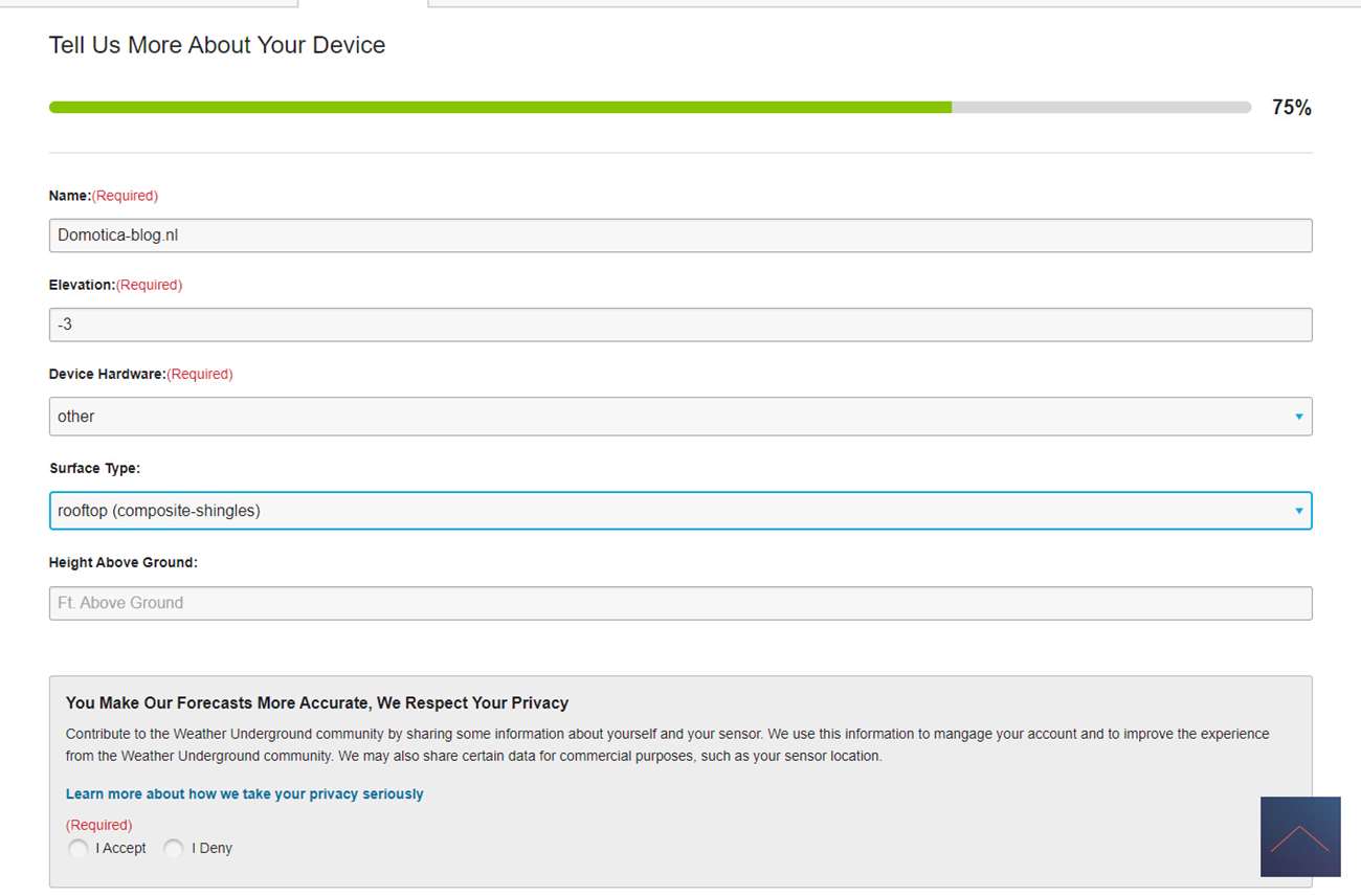 Nu we alles geinstalleerd hebben kunnen het weerstation gaan koppelen aan Weather Underground. Hierdoor krijg je uitgebreide statistieken en maak je het mogelijk om alles te laten zien in je Smart Home systeem.