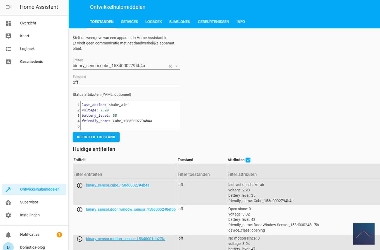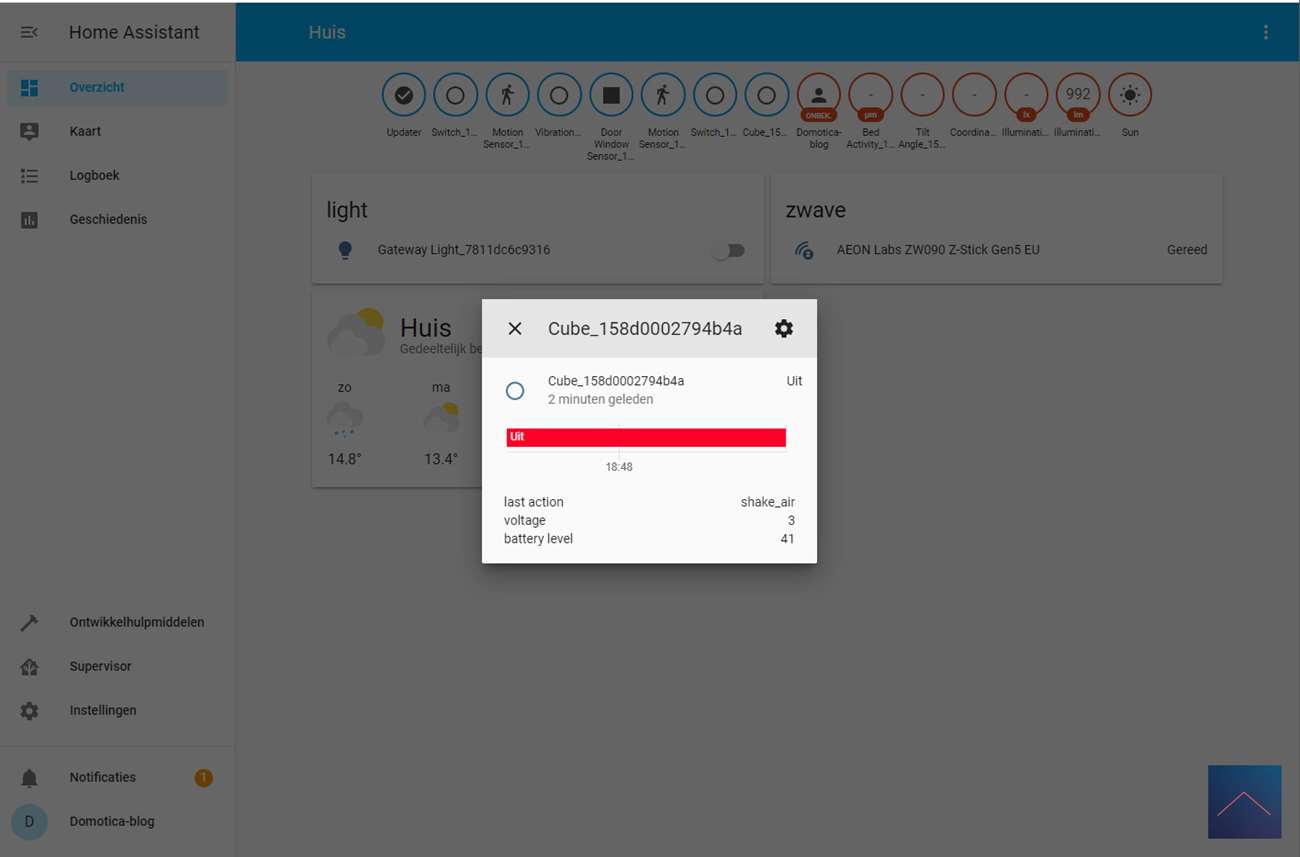 Nu voeg je de Cube toe aan de Gateway en kun je hem daarna gebruiken in HASS.