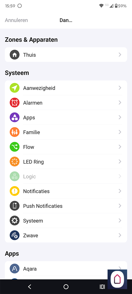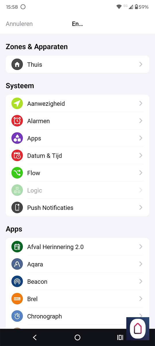 Installatie via de Homey:
