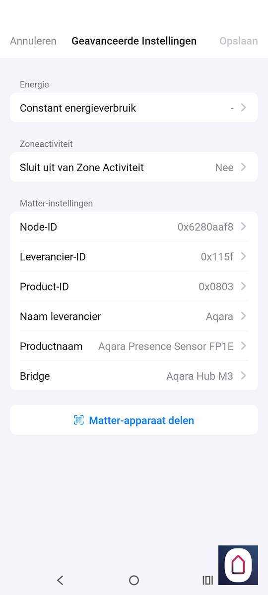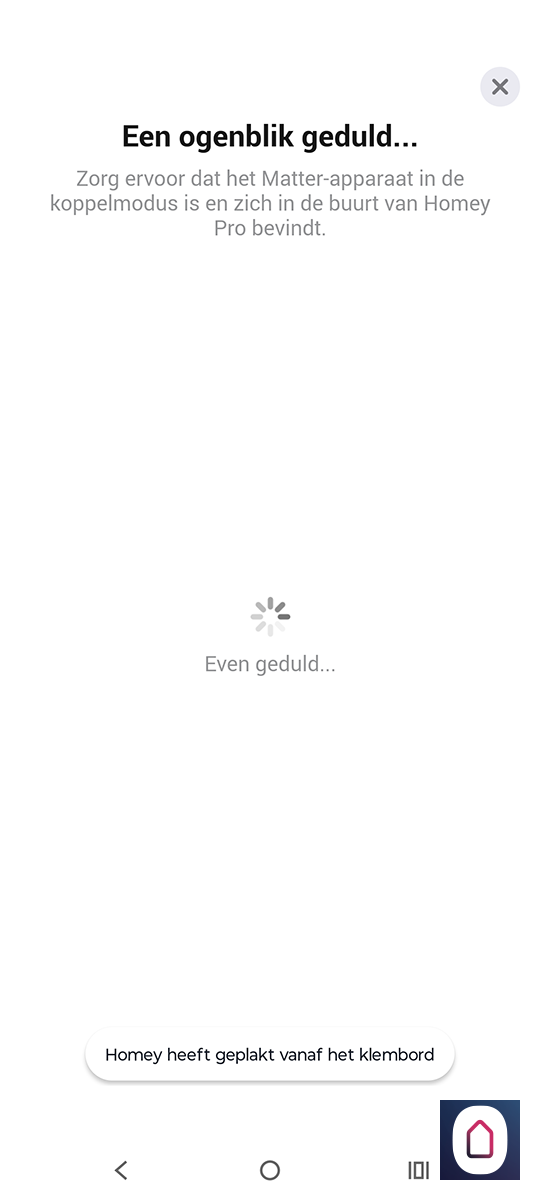We doen weer nieuwe apparaat en kiezen nu voor matter. Zorg dat de Hub en de Homey dichtbij elkaar in de buurt zijn. Om ze aan elkaar te koppelen heb je een koppelingscode nodig. Deze kun je vinden in de Aqara APP. Deze plak je vervolgens in de Homey APP. Na enkele seconden zien we dat hij de hub/sensor heeft gevonden en zien we hem bij 'mijn apparaten' te voorschijn komen.