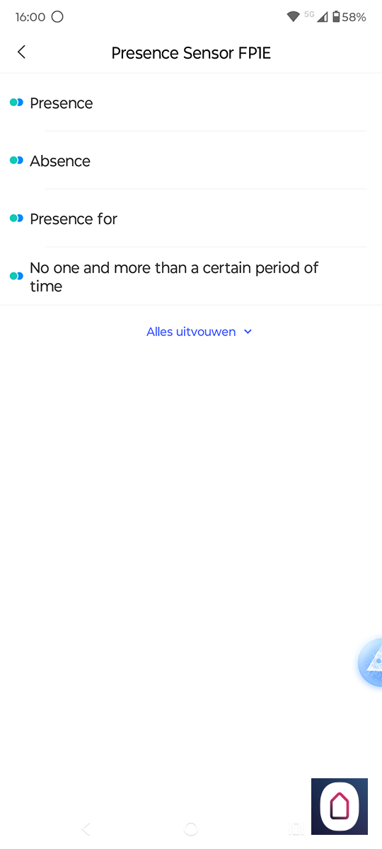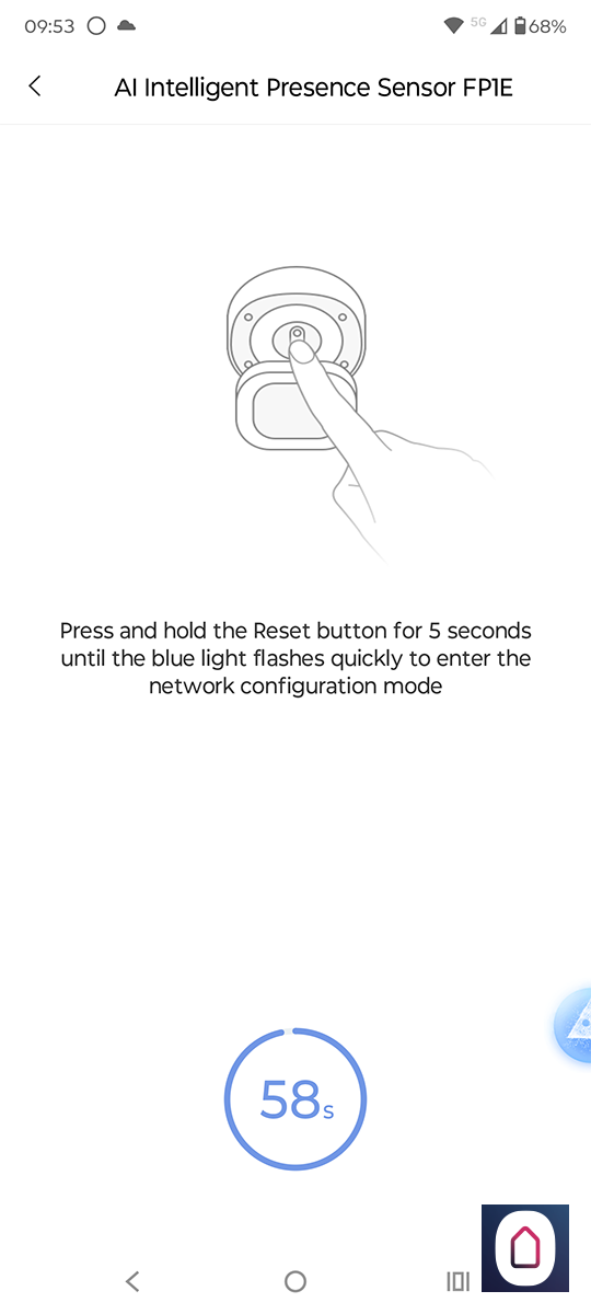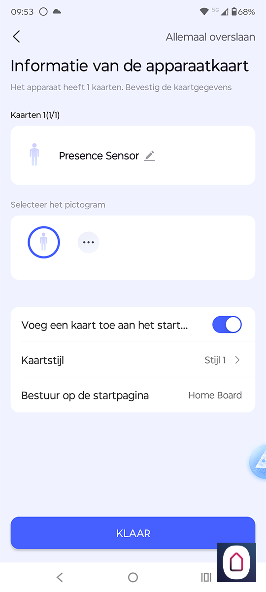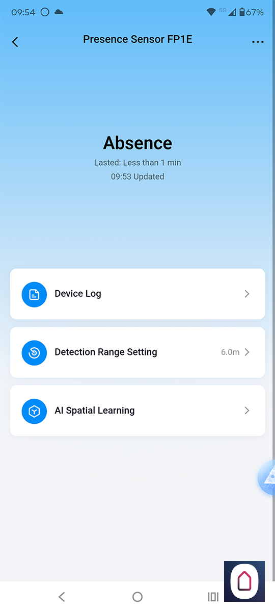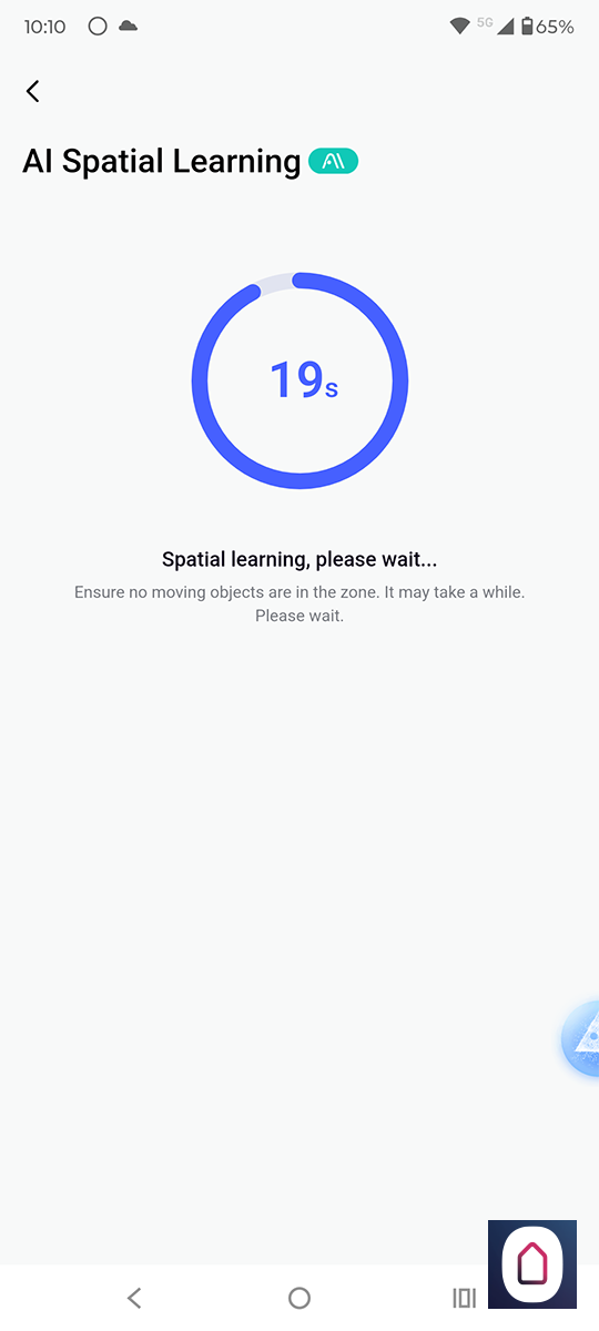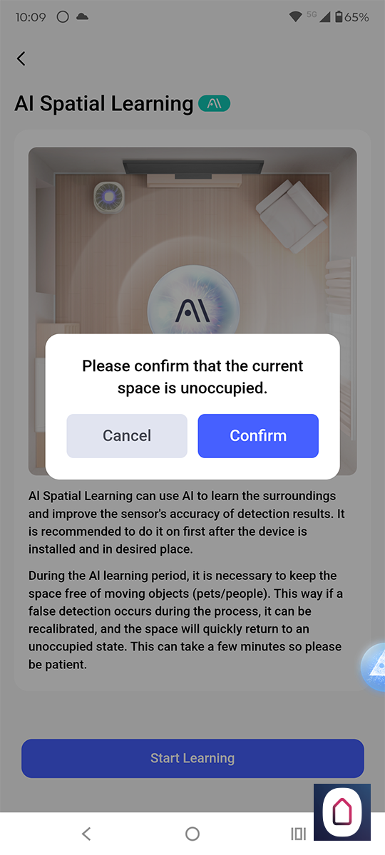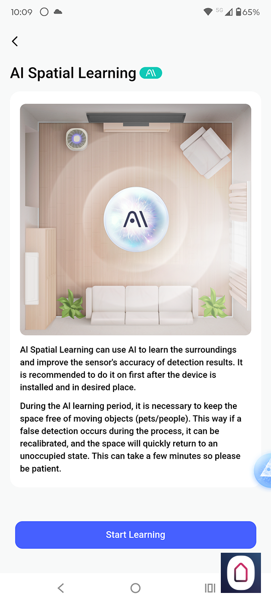 Nu kan dit te maken hebben dat we de sensor nog niet voor zien hebben van een configuratie. Er zit namelijk een AI leer functie in de APP welke de ruimte in kaart brengt. Dus laten we deze eens gaan starten. Hierbij moet je zorgen dat er niemand in de ruimte is en dit kan even een paar minuten duren, dus pak er een koffie bij.