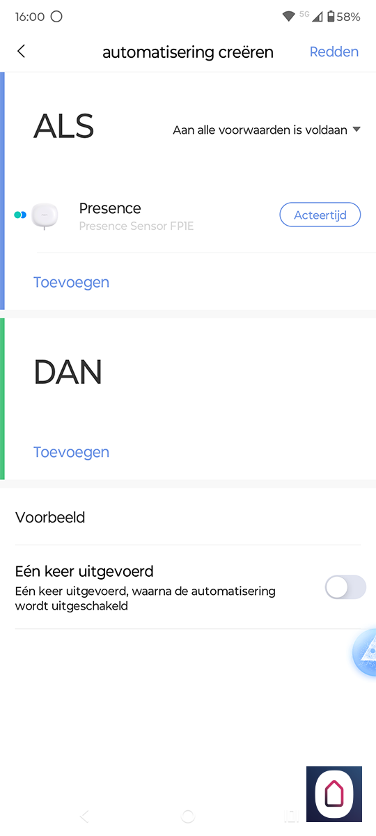 Natuurlijk allemaal leuk en aardig maar zonder automatisering kun je natuurlijk nog weinig met deze sensor. Dus laten we een voorbeeld maken waarbij, als er beweging wordt gedetecteerd en de zon is onder (het is donker), dat dan een lamp aan gezet word.