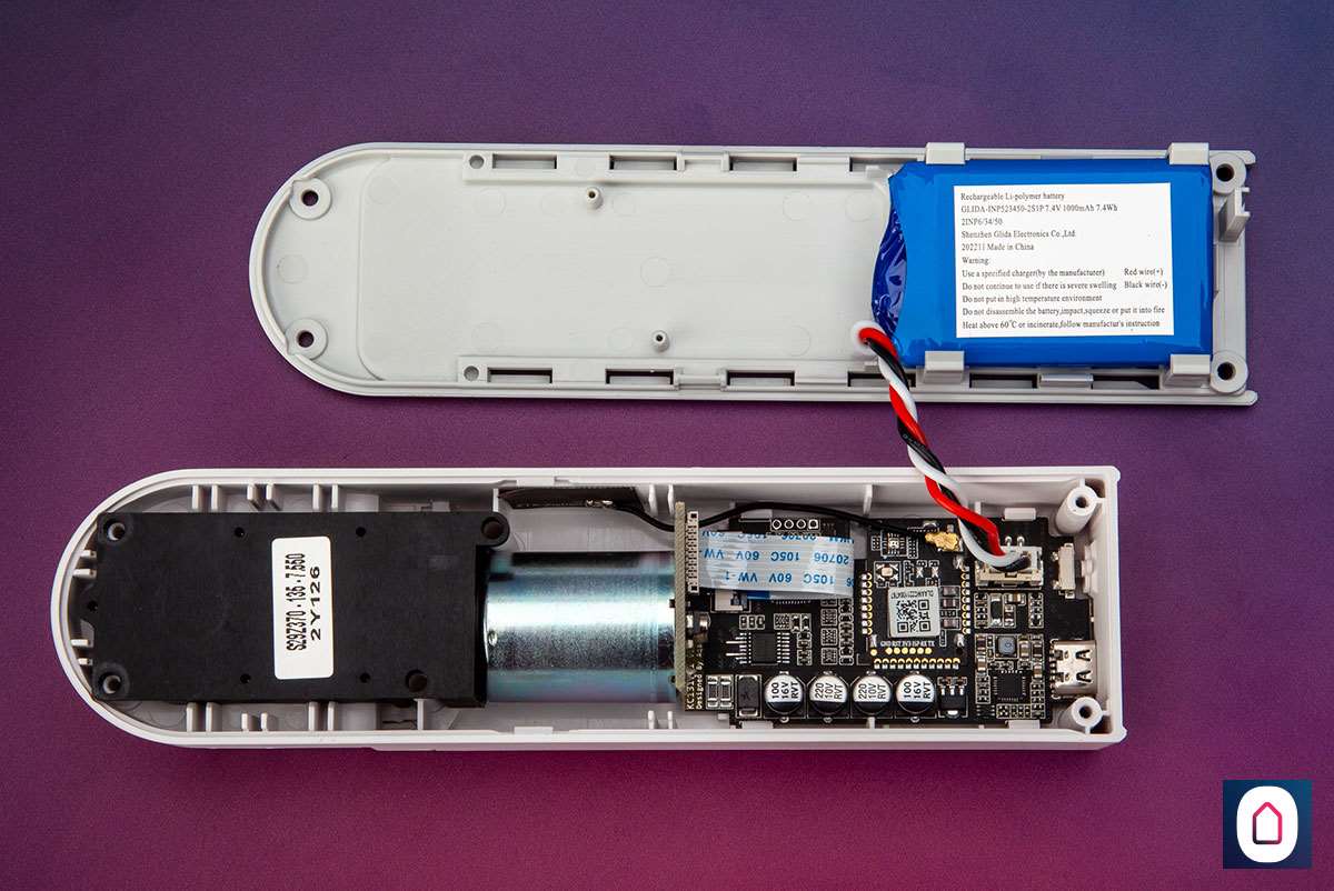 Het installeren is volgens Aqara super eenvoudig, want het is een kwestie van de driver vastschroeven (of vastplakken), het juist tandwieltje kiezen en je koord erin leggen. We gaan natuurlijk kijken of dit echt het geval is. Hij heeft een ingebouwde lithium batterij, welke je kunt opladen met behulp van een USB-C kabel (wordt niet geleverd). De batterij zou dan 2 maanden mee moeten gaan zonder opladen. Dit is gebaseerd op eenmaal gebruik per dag. Volgens Aqara kan de batterij niet vervangen worden, maar als we hem opschroeven zie ik daar een normale batterij welke prima te vinden is op bv Aliexpress.