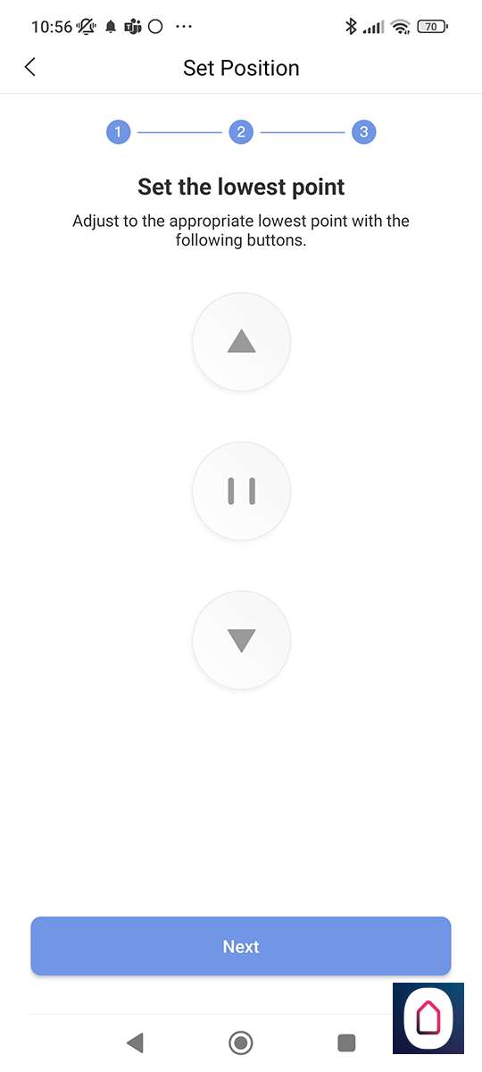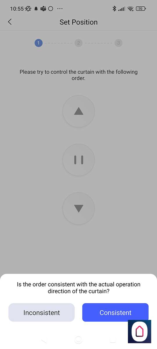 Nu moeten we zorgen dat de 'open' en 'gesloten' positie gaat kloppen. De eerst stap is om te bepalen of de knop omhoog daadwerkelijk ook de gordijnen opent en dat naar beneden ze ook weer sluit. In ons geval klopte dit dus kunnen we door.