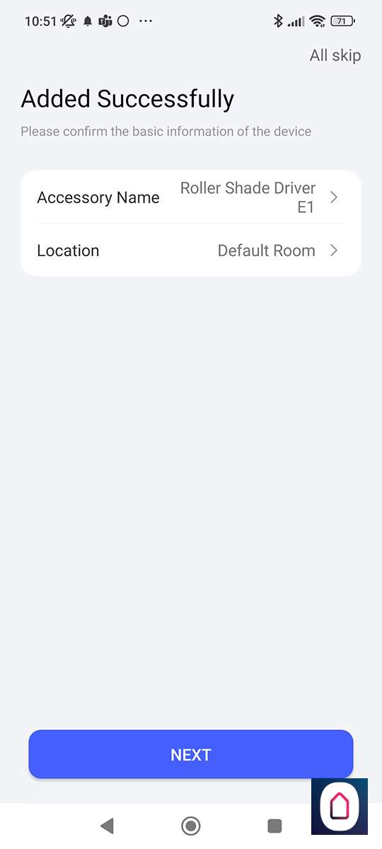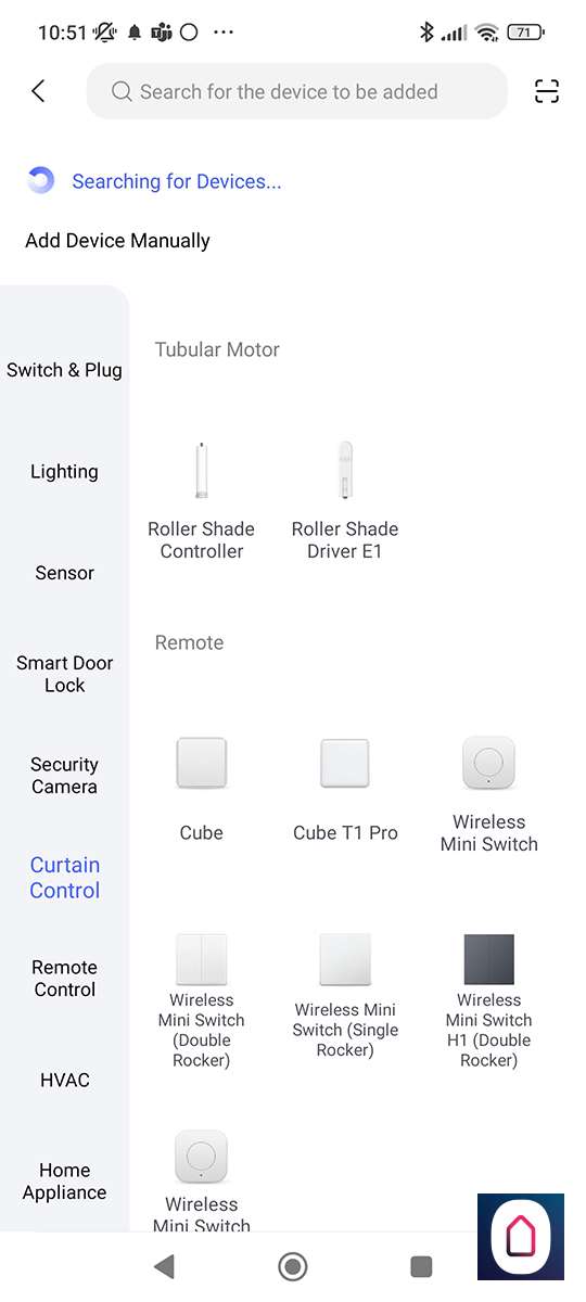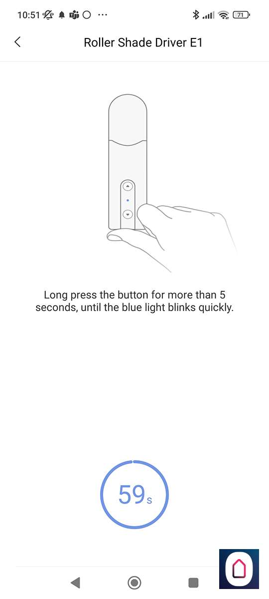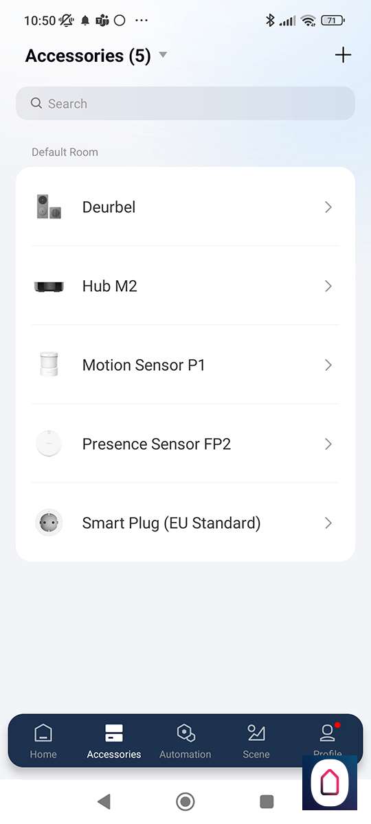 We zoeken vervolgens de E1 op en drukken op de reset knop aan de onderkant totdat het LEDtje blauw gaat knipperen, na enkele seconden zegt de hub dat hij verbonden is en zien we hem in de APP.