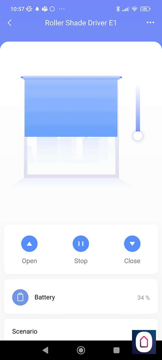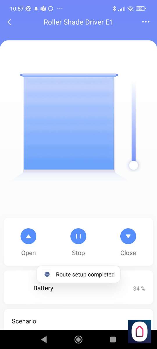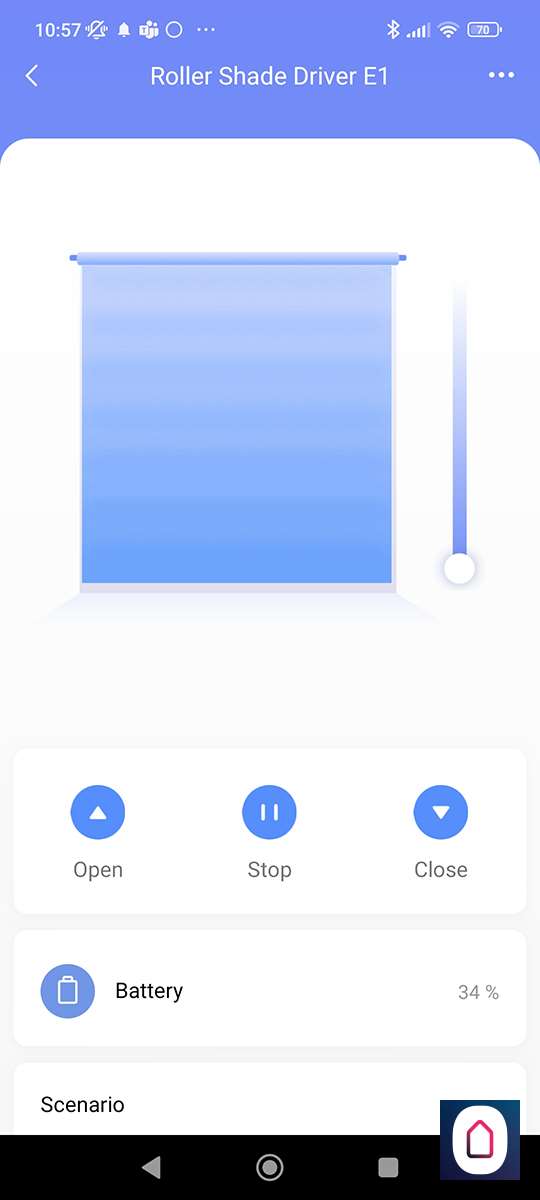 Nu we dit allemaal gedaan hebben kan ik via de APP het gordijnen open en sluiten, en de positie bepalen (half open) en het batterijnivo zien.