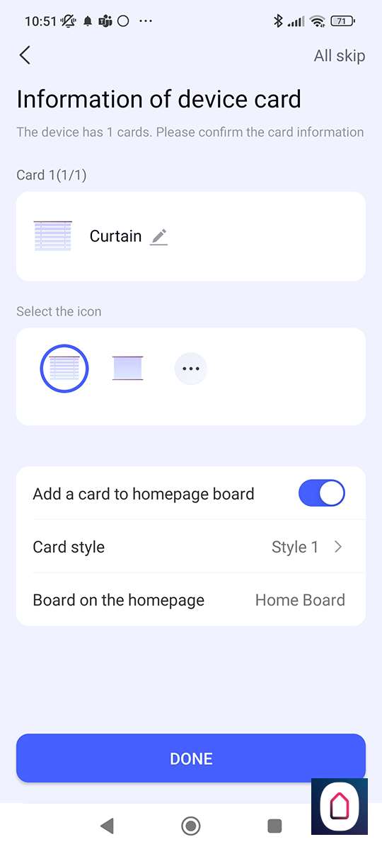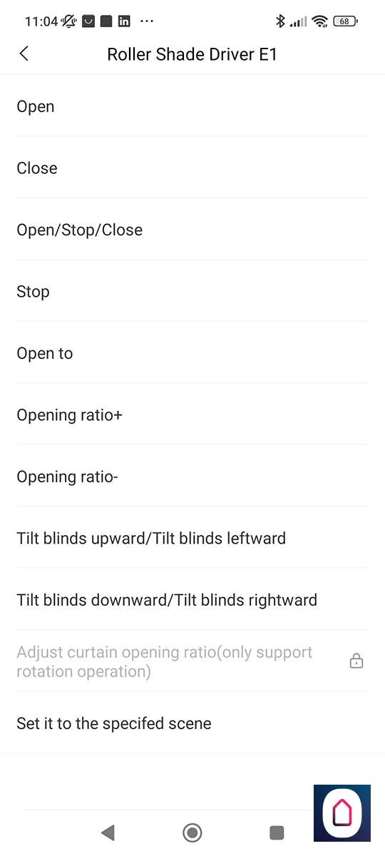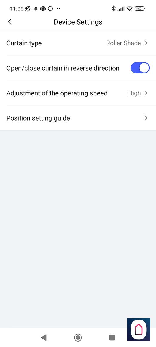 Bij de configuratie kun je het soort gordijn, de snelheid en de richting instellen. Daarnaast vind je hier ook de optie om hem opnieuw te kalibreren.