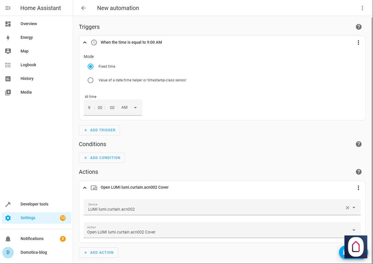 We maken dat als het 9:00 uur is dat dan de gordijnen open gaan.