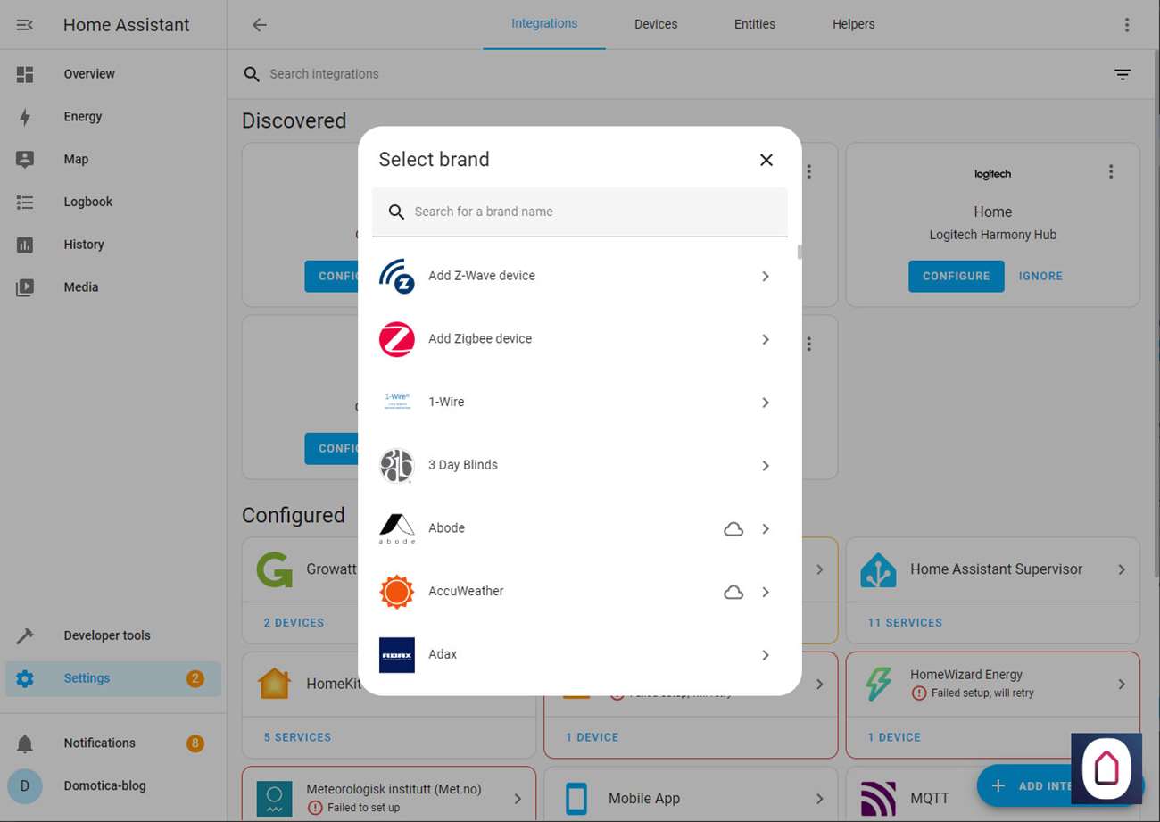 Installatie via Home Assistant: