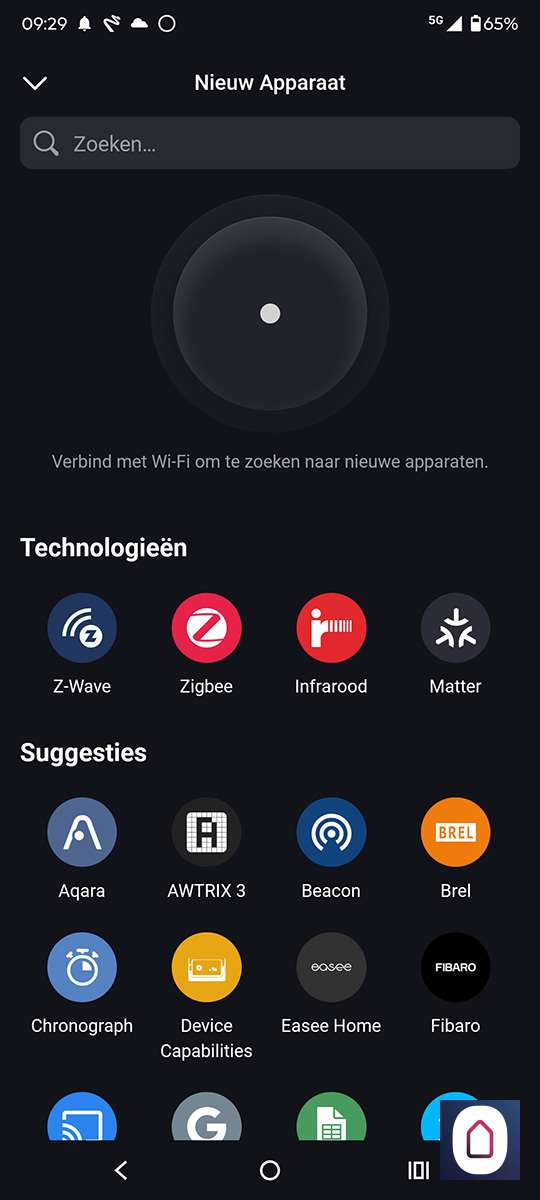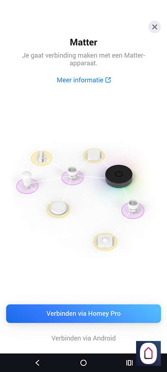 - We gaan hem via de Homey toevoegen dus selecteren deze optie. Zorg dat het slot, je telefoon en de Homey Hub dichtbij elkaar zijn.