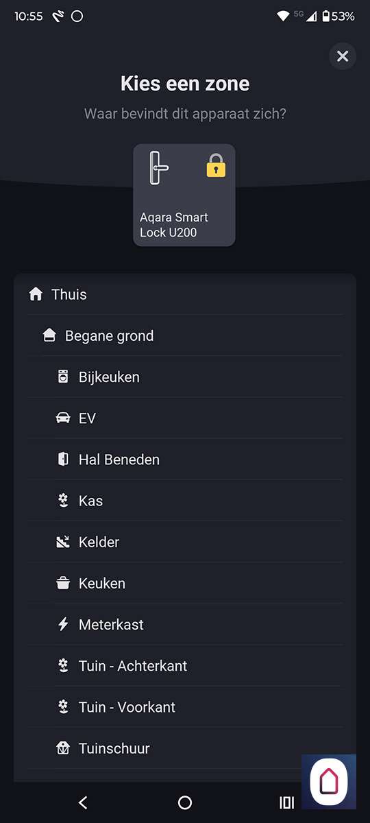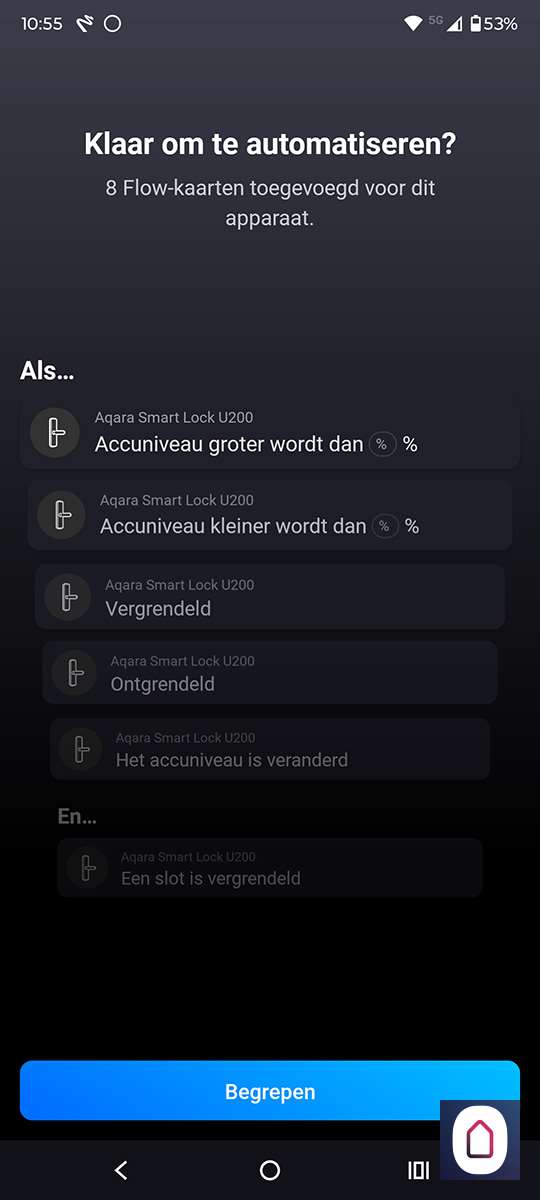 We kunnen het slot open en sluiten. Helaas hebben we geen mogelijk om alleen het dagslot open of dicht te doen. Hij gaat dus altijd helemaal op slot of helemaal open. Dat is jammer. Er zijn voor de rest ook geen configuratie mogelijkheden. Dit zul je dus moeten regelen via de Aqara APP. We zien gelukkig wel het batterijniveau.