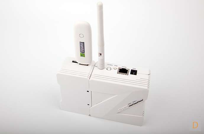 Je kunt in de USB poort van deze module een 3G stick plaatsen. Mocht je internet weg vallen dan maakt hij verbinding via deze stick. De 3G stick wordt niet meegeleverd.
