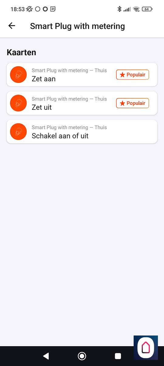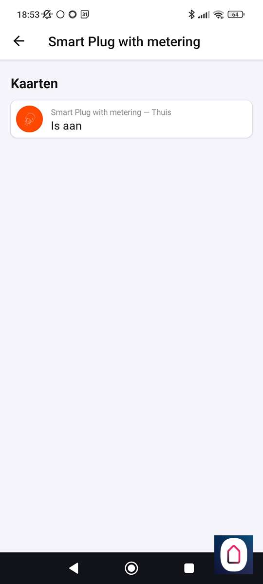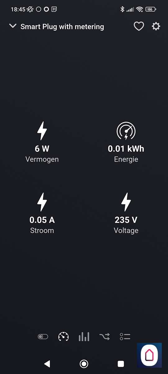 Je krijgt een aan-/uitschakelaar en je kunt je totaal verbruik en huidige verbruik inzien. Als je de plug met de hand aan/uitzet wordt dit ook geüpdatet in de APP.