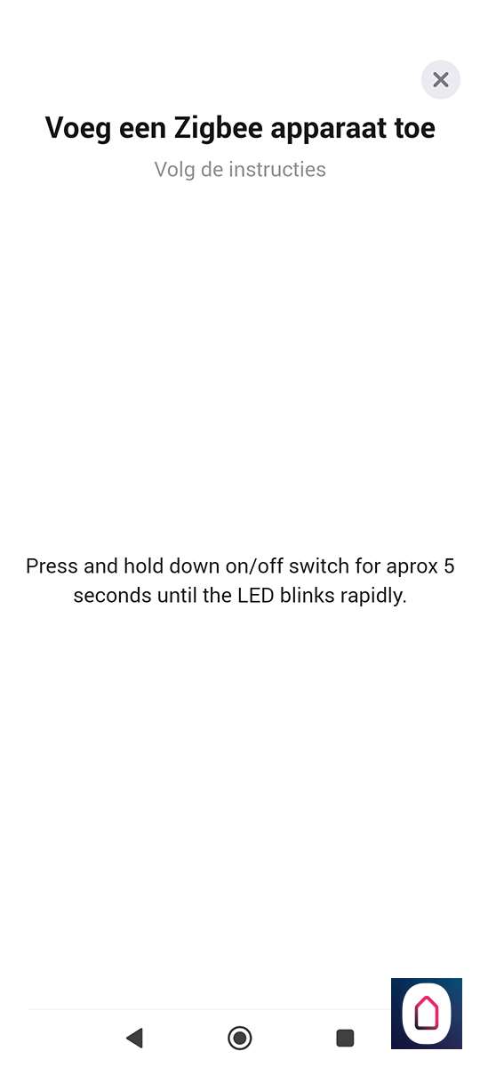 Om het toevoegen te starten zetten we de plus in de leerstand door het knopje aan de zijkant 5 seconden lang ingedrukt te houden tot de LED paars/rood gaat knipperen. Na enkele seconde wordt hij toegevoegd.