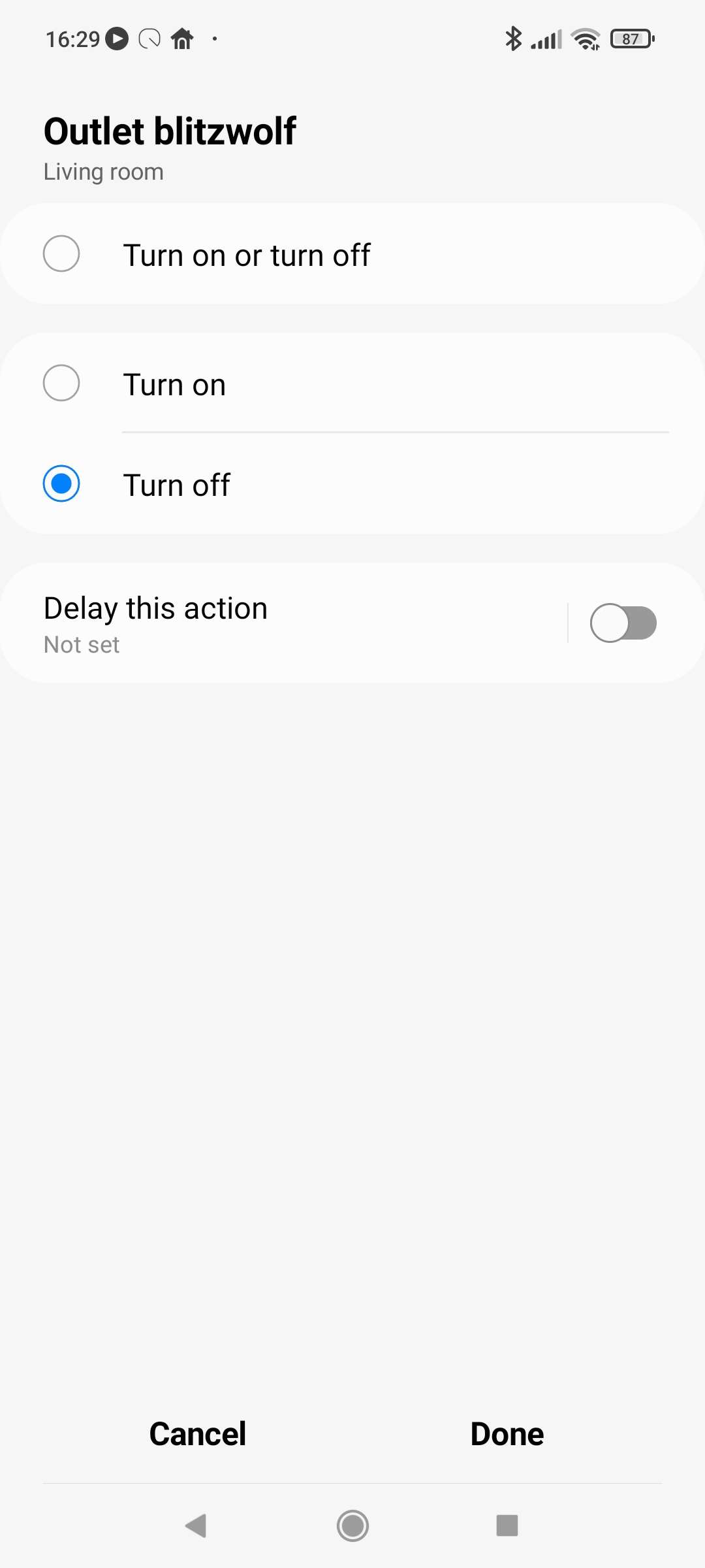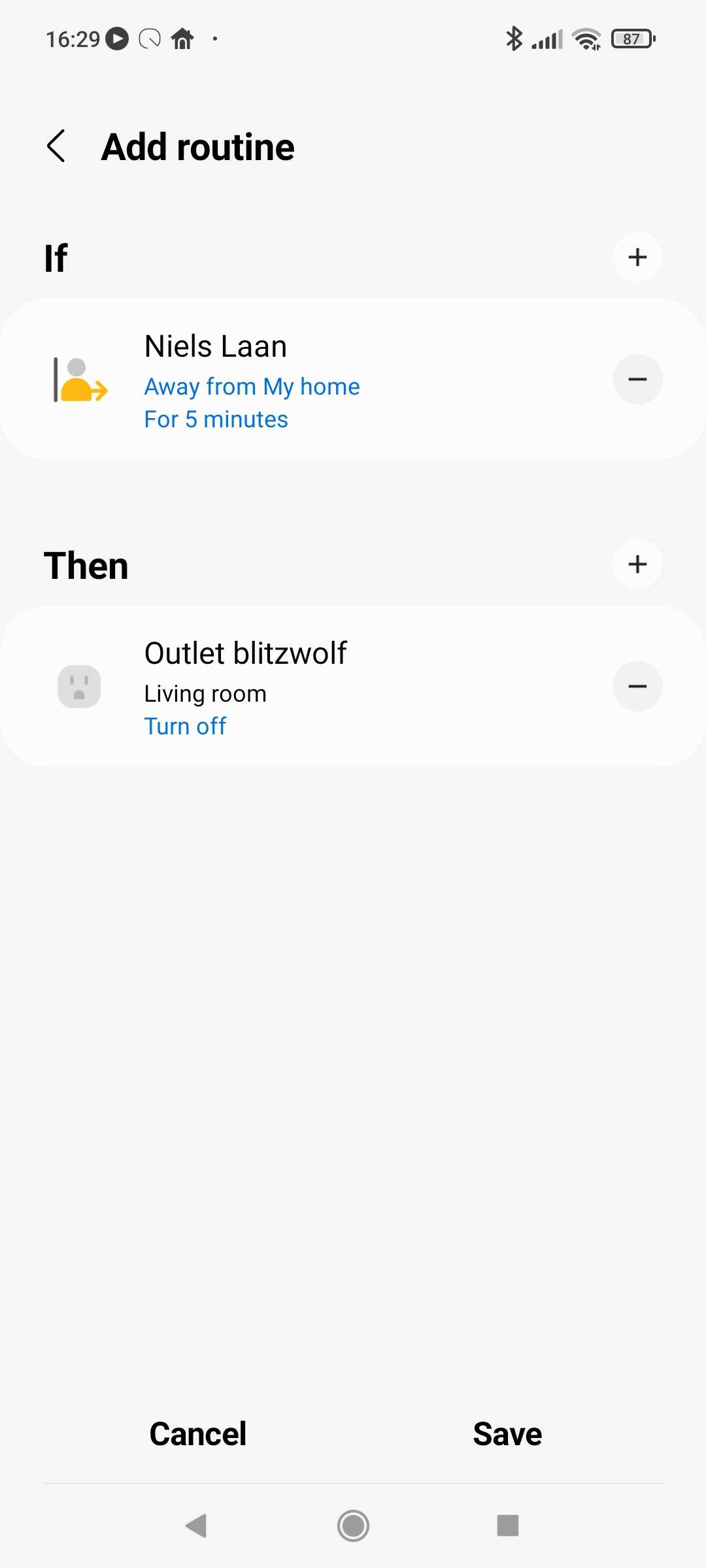 We kunnen helaas geen gebruik maken van de energie meting om bv te bepalen of onze wasmachine klaar is. We maken daarom een routine dat als we weg van huis zijn dat de plug wordt uitgezet.