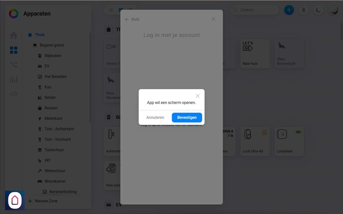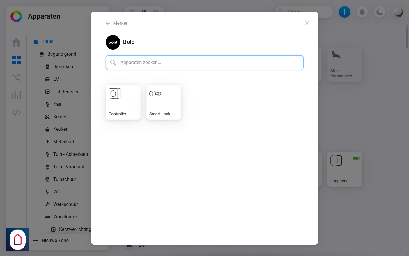 Wanneer je het slot toevoegt via de standaard Bold app in Homey, krijg je eigenlijk alleen een aan/uit schakelaar. Functioneel werkt dat prima, maar het voelt niet helemaal logisch voor een slot. Aan betekent ontgrendeld, uit betekent vergrendeld.