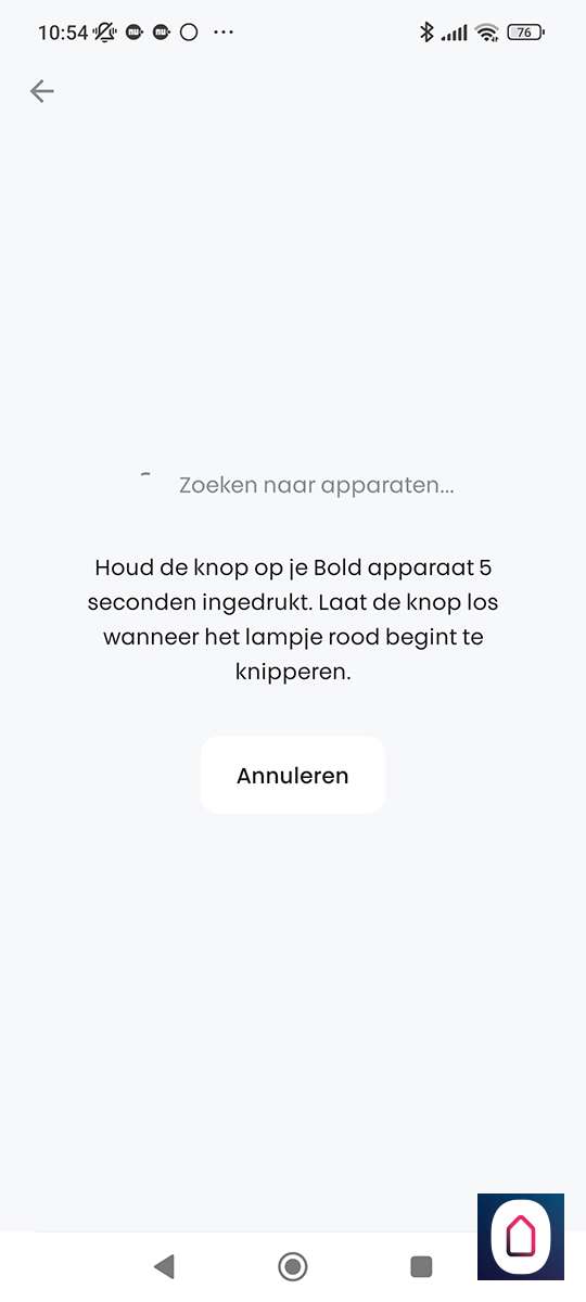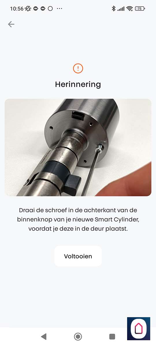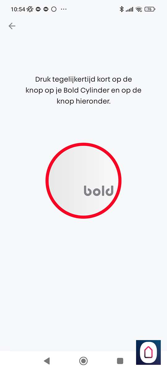 Stap 3: Hij vindt hem hierna vrijwel direct en dan moet je het knopje nogmaals indrukken (zowel in de APP als op het slot);